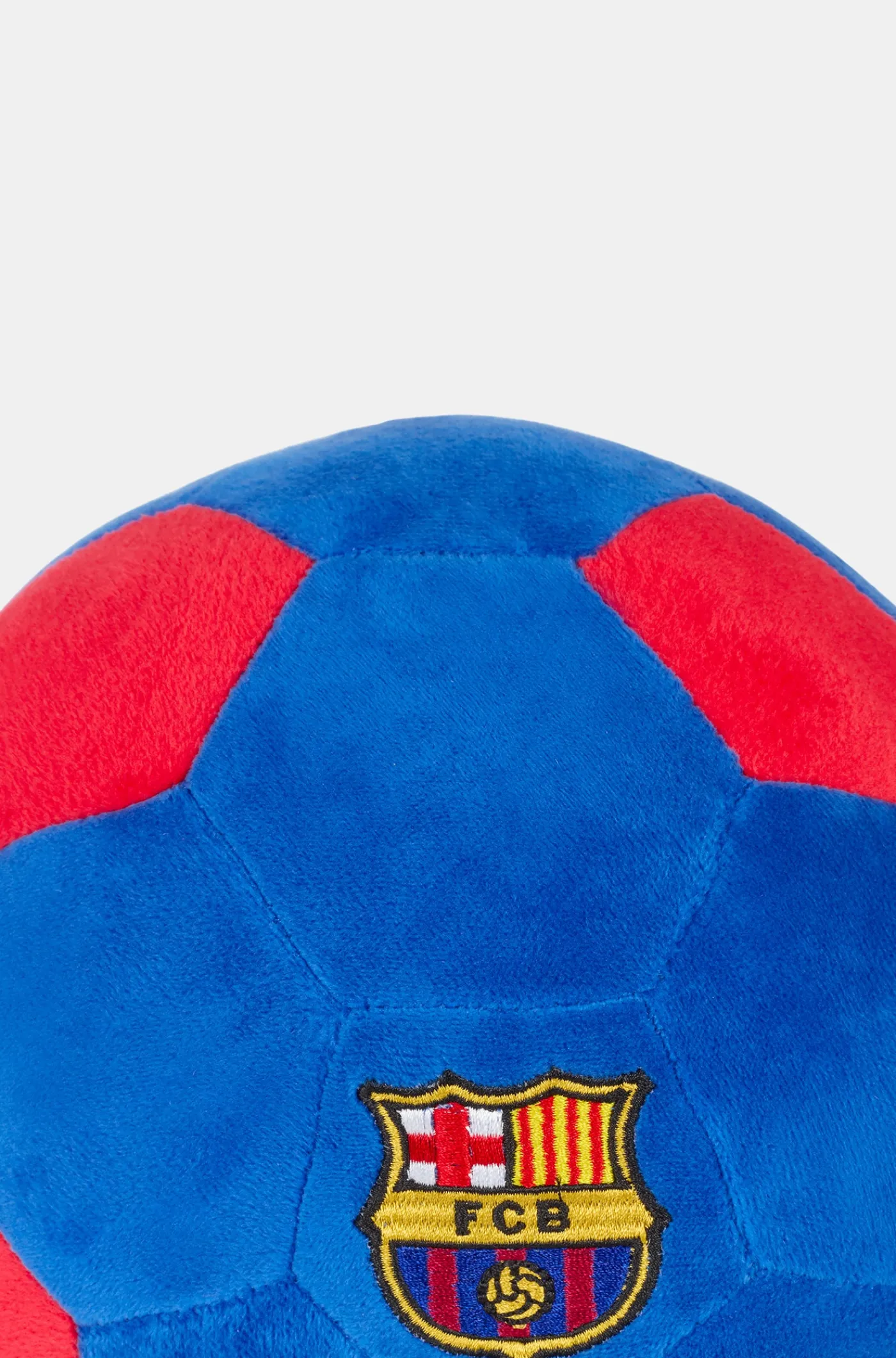 Pelota de peluche del FC Barcelona. Color: azul y rojo.