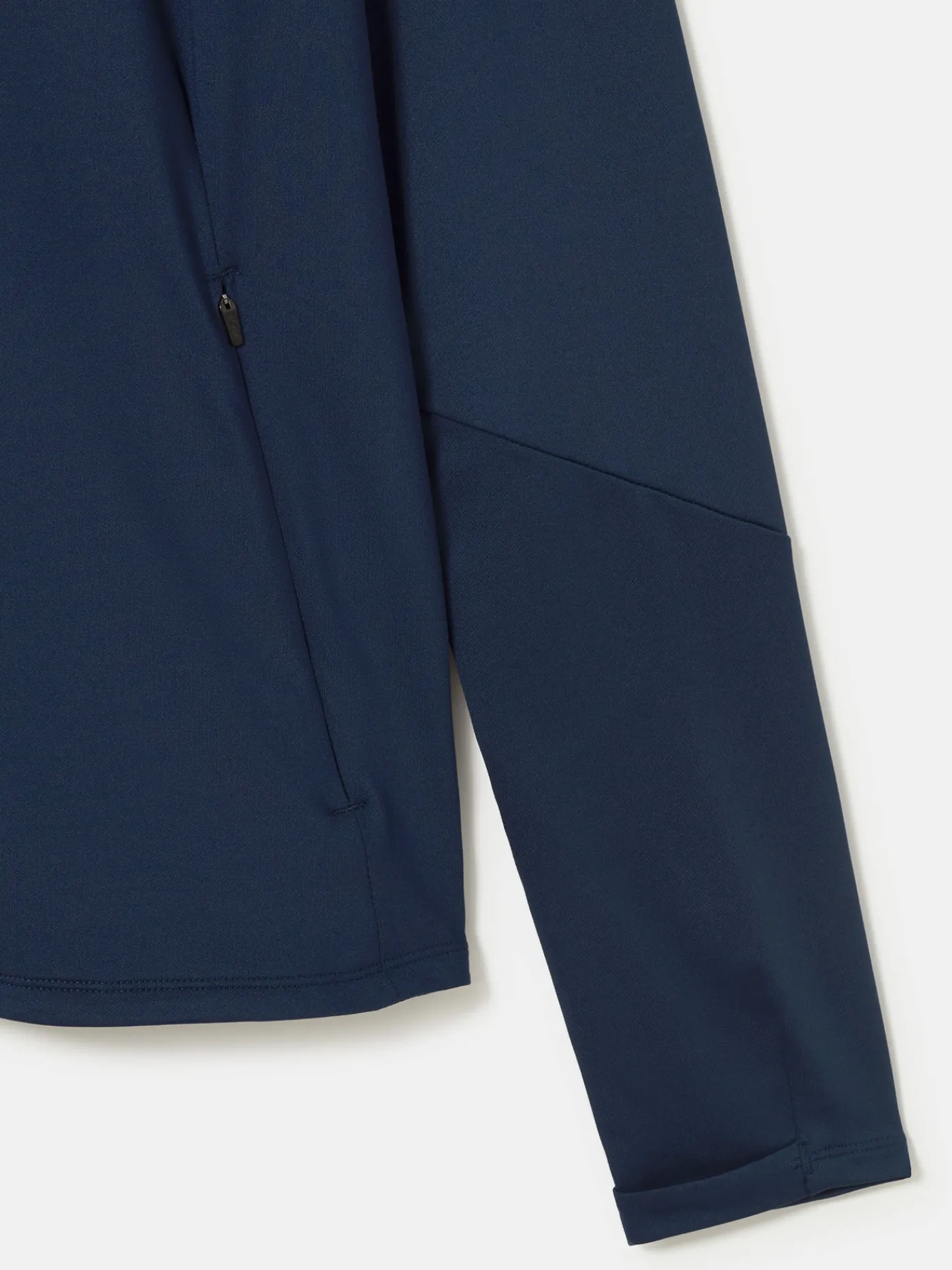 Chaqueta de manga larga, con un pequeño parche con un escudo en el pecho izquierdo. Bolsillos laterales con cremallera. Color: azul marino.