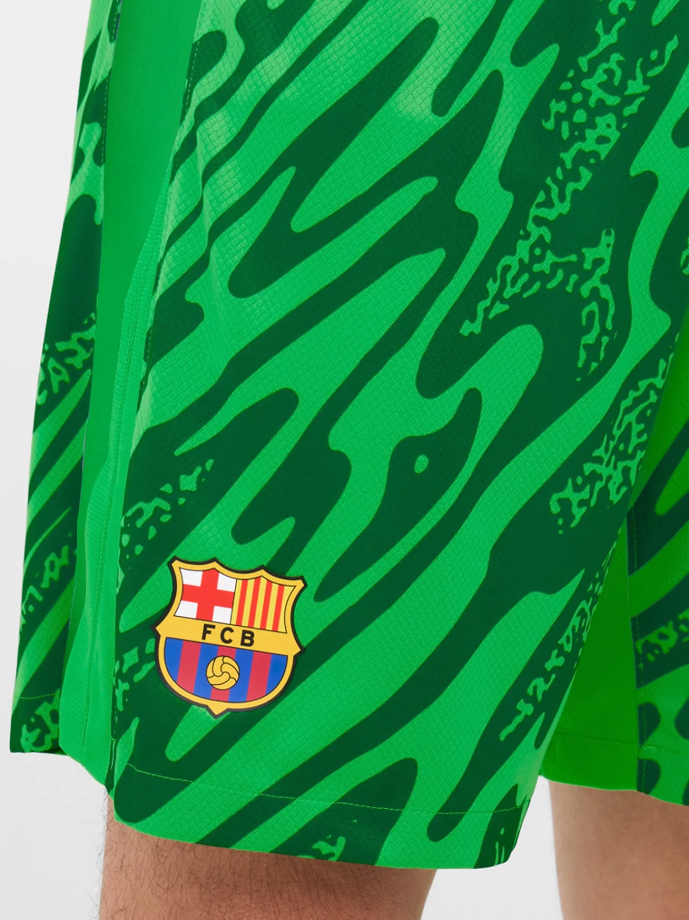Pantalón corto de portero del FC Barcelona 24/25. Cintura elástica con cordones. Tecnología Dri-FIT de Nike. Color: verde.