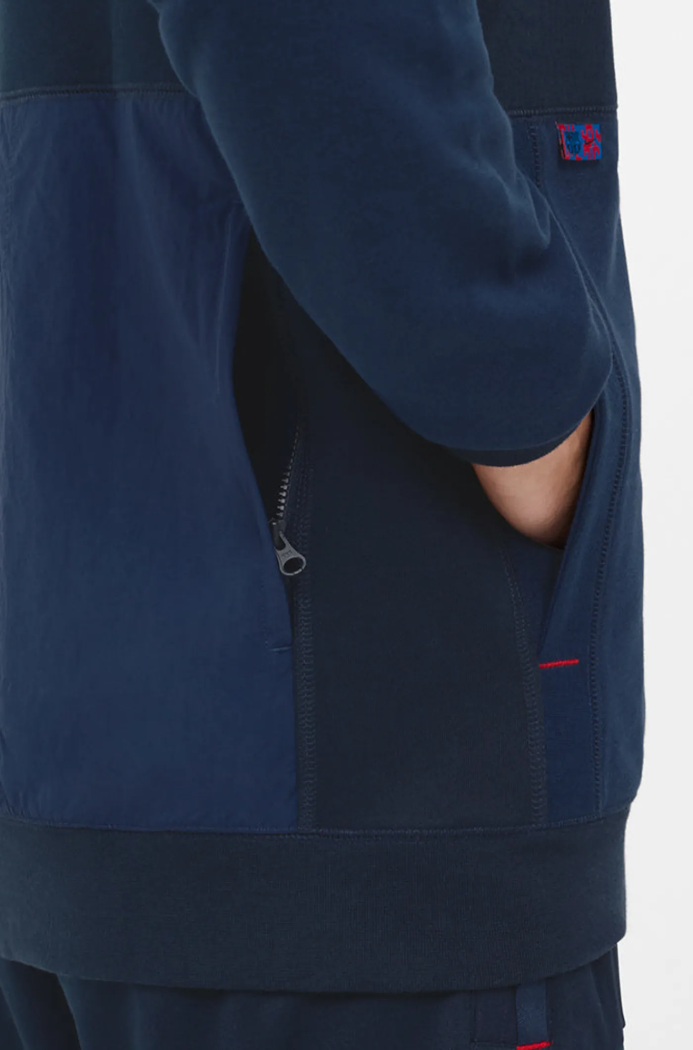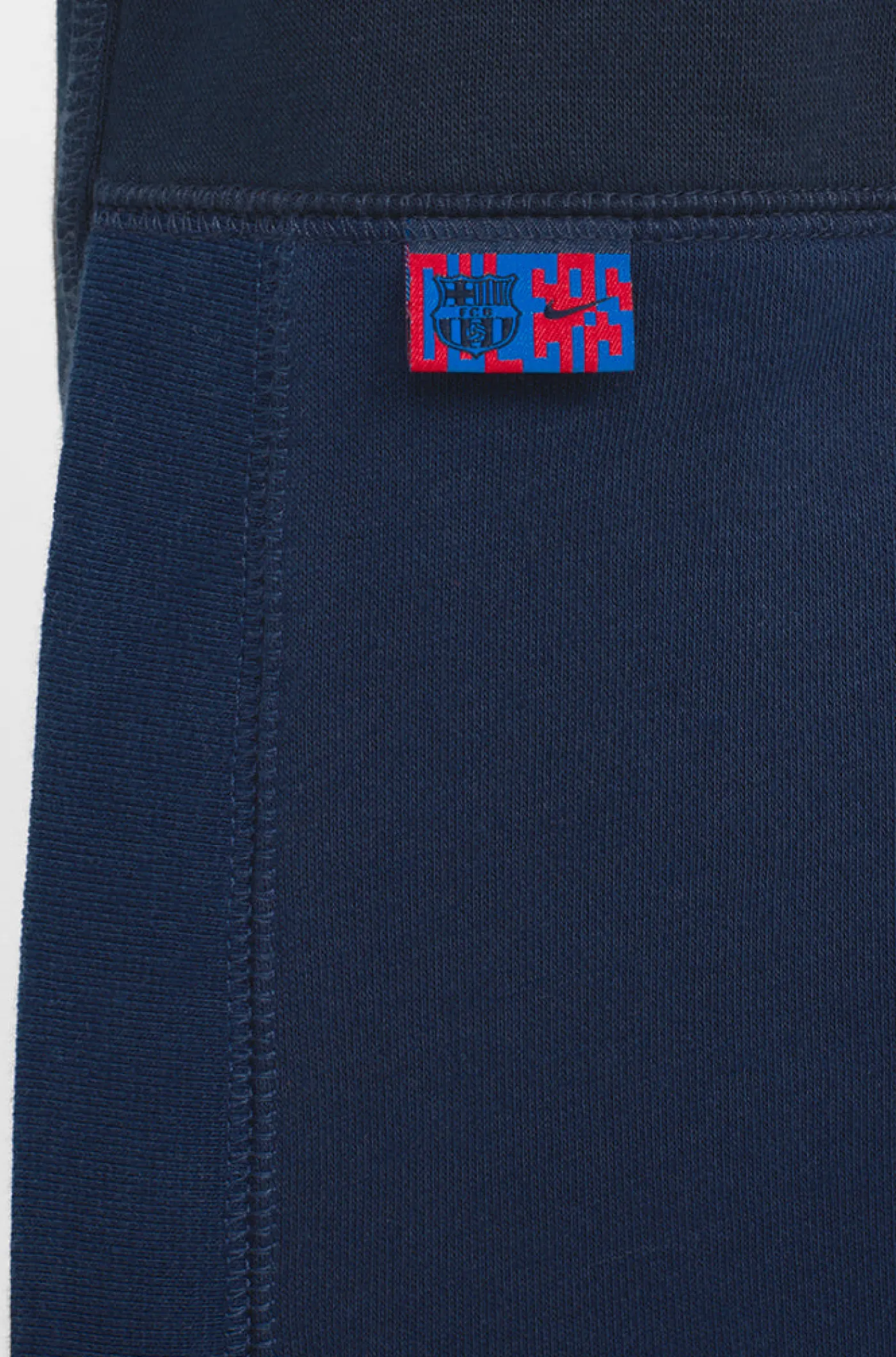 Sudadera con capucha con el parche del escudo del FC Barcelona y el logo de Nike bordado en el bolsillo delantero. Manga larga. Capucha. Interior de felpa ligera. Cintura y puños elásticos. Bolsillos laterales con cremalleras. Color: azul marino.