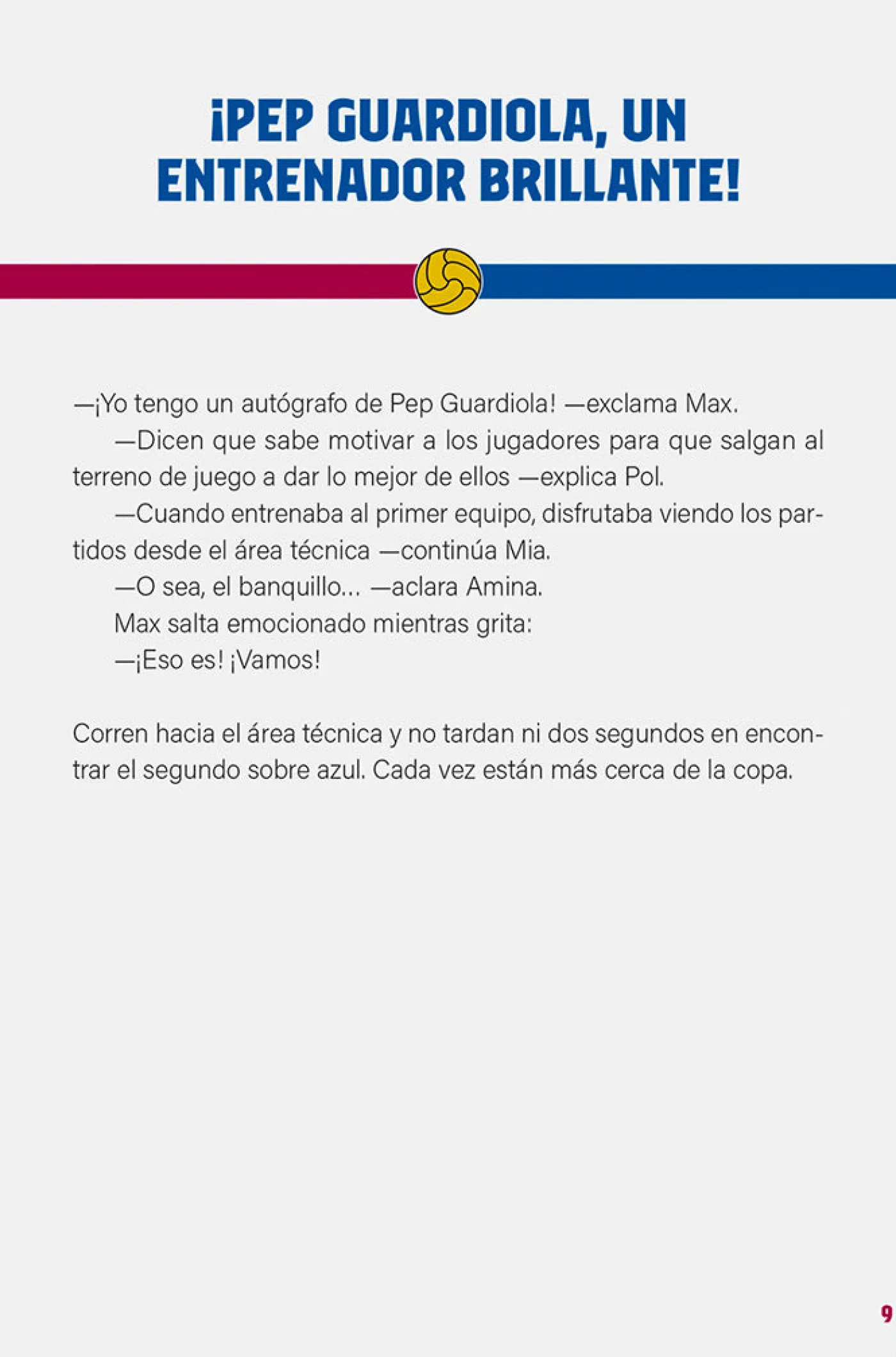 El escape book oficial del Barça.Max, Mia, Pol y Amina son cuatro jóvenes que juegan en diferentes secciones del Barça: fútbol masculino, básquet femenino, balonmano y fútbol femenino, respectivamente. Su actitud en los entrenos y partidos deja mucho que desear, así que sus entrenadores les sancionan pasando un sábado entero a las órdenes de Rafa, el conserje y encargado del mantenimiento del Camp Nou.Rafa les manda ordenar un almacén situado en el sótano, donde descubren una caja vieja cerrada con un candado. Cuando consiguen abrirla, dentro encuentran un documento que explica que la primera Copa de Europa que ganó el Barça está escondida en algún lugar secreto del estadio.Los cuatro jóvenes iniciarán un viaje por los diferentes espacios del Camp Nou a lo largo del cual irán resolviendo misterios y aprendiendo sobre la historia del club.¿Conseguirán recuperar la copa?Idioma: Castellano