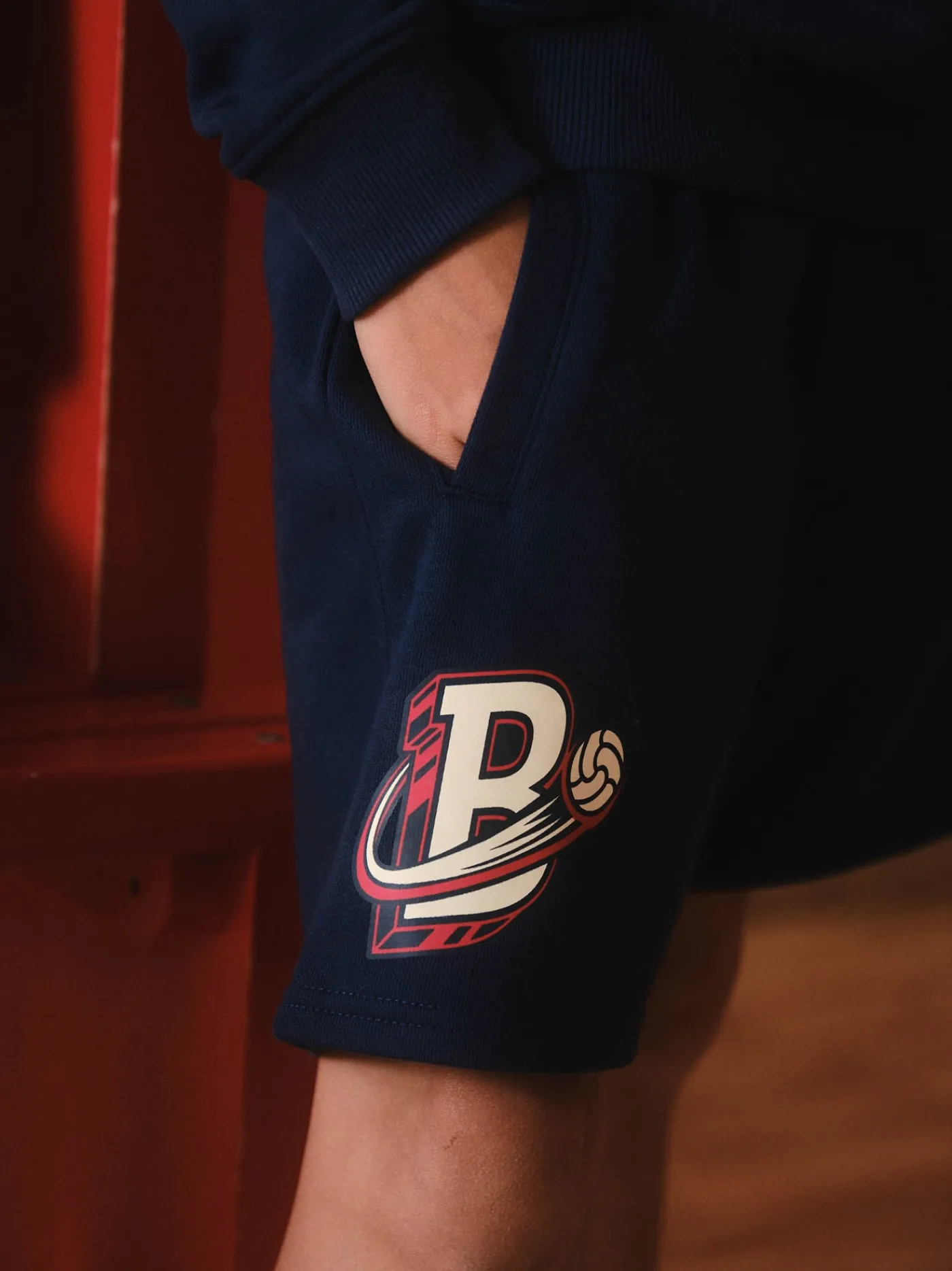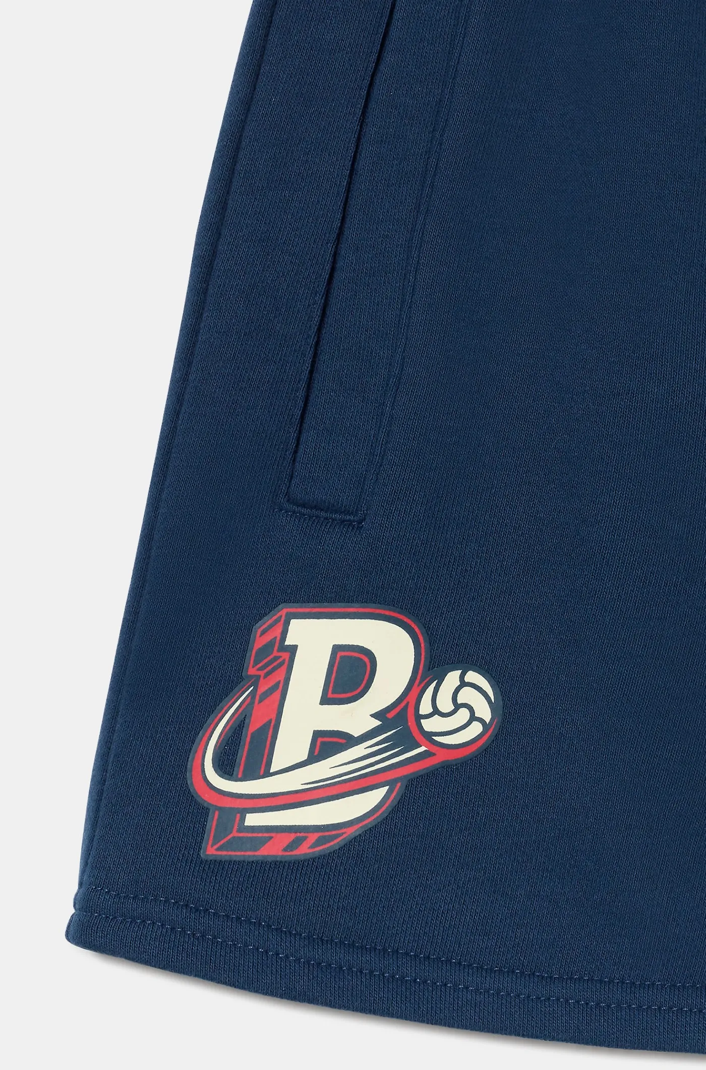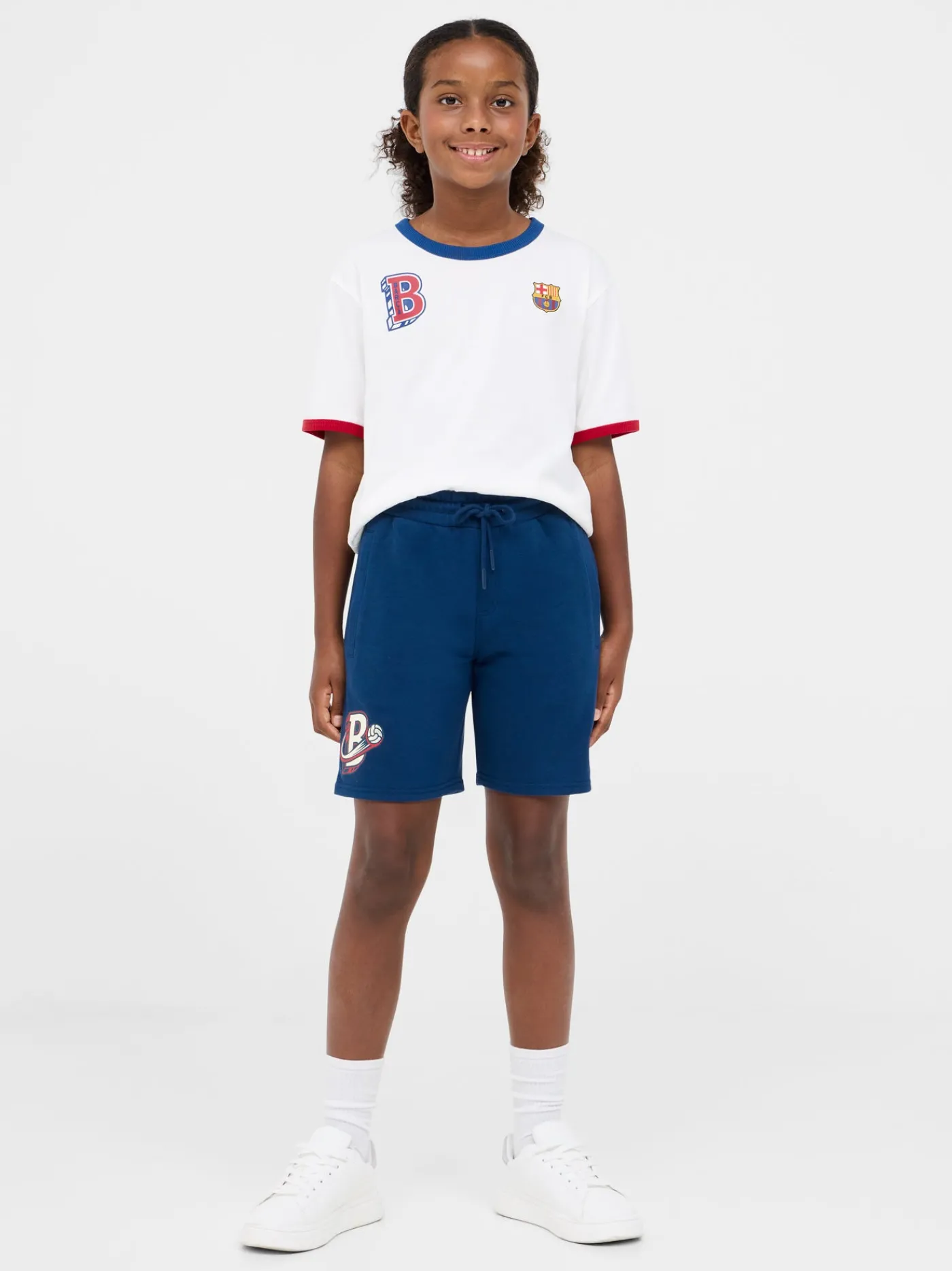 Pantalon corto azul marino para niño/a. Detalle del escudo en el lado izquierdo y letra B distintiva de la colección en el lado izquierdo.