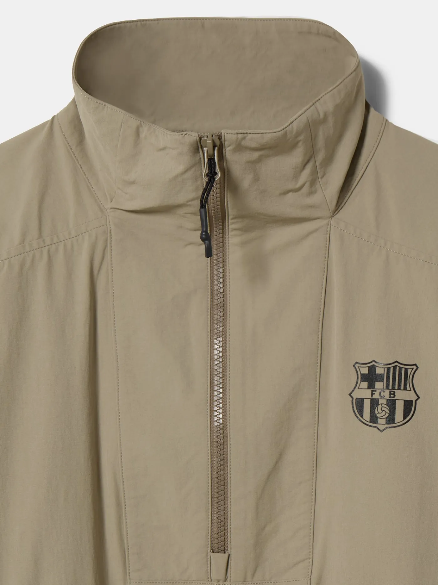 Chaqueta con el escudo estampado en el pecho, texto «BARÇA» en la parte trasera a contraste y pequeño detalle blaugrana en la parte trasera.