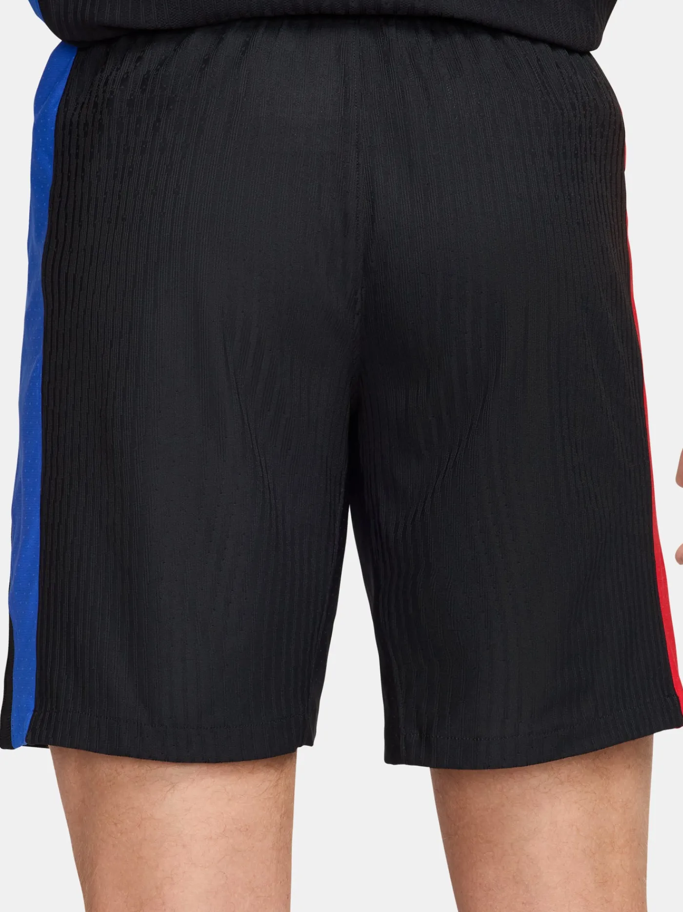 Pantalón corto de la segunda equipacion del FC Barcelona 24/25. Edición jugador, mismo que llevan los jugadores del primer equipo. Cintura elástica. Su tecnología Nike Dri-FIT ADV cuenta con un tejido de gran elasticidad y secado rápido que evita el roce y combate la humedad. Color: negro