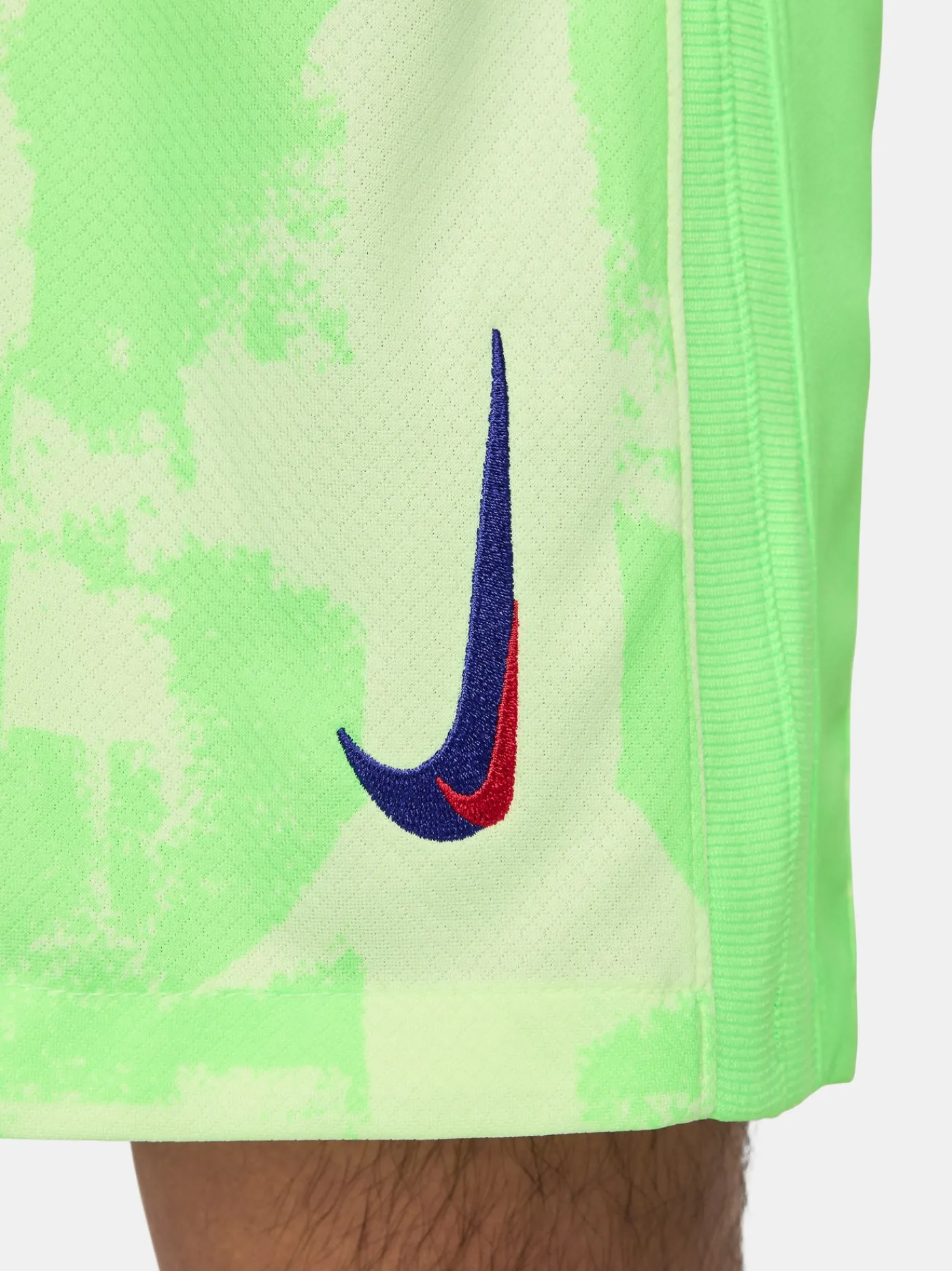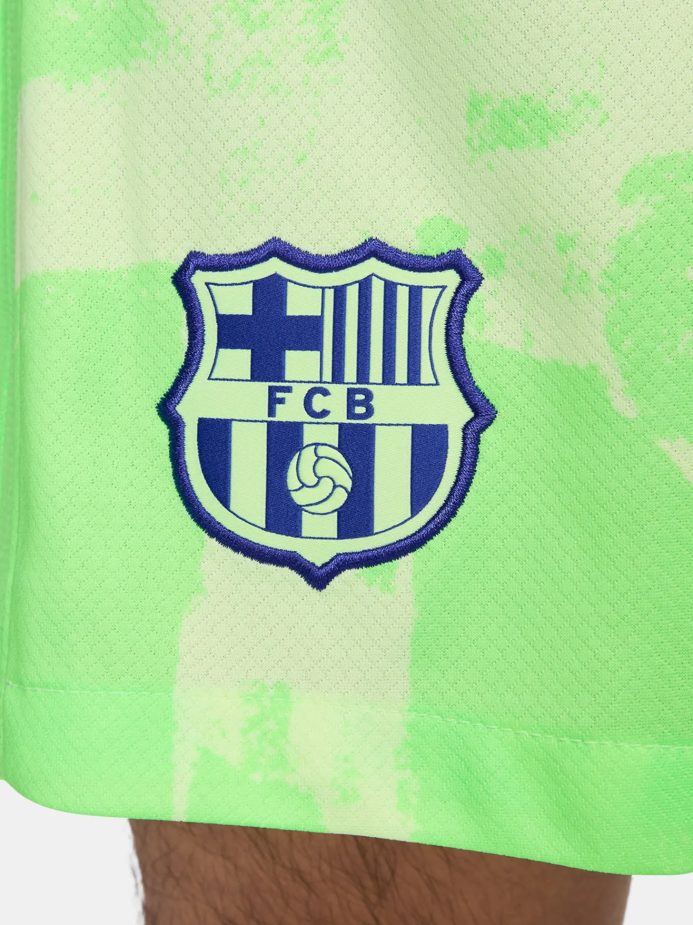 Pantalón corto de la tercera Equipación 24/25. Con el parche del escudo del FC Barcelona y el logo de Nike bordado. Cintura elástica con cordones en el interior. Tecnología Dri-FIT de Nike. Color: lima