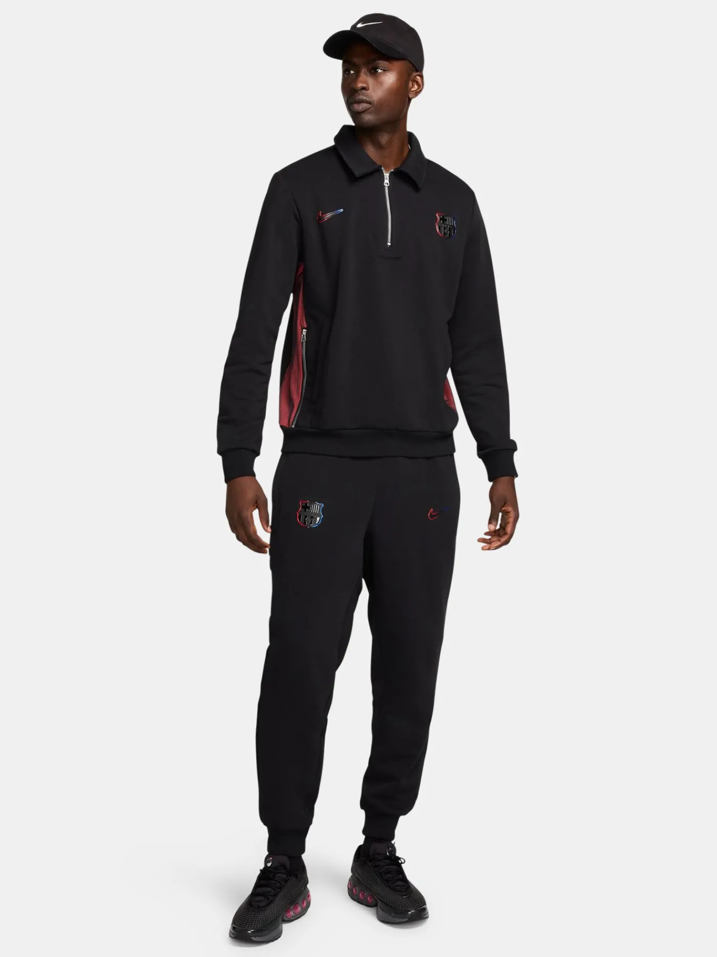 Sudadera negra con media cremallera central y cuello con solapa.Escudo del FC Barcelona bordado. Franjas laterales a amb…