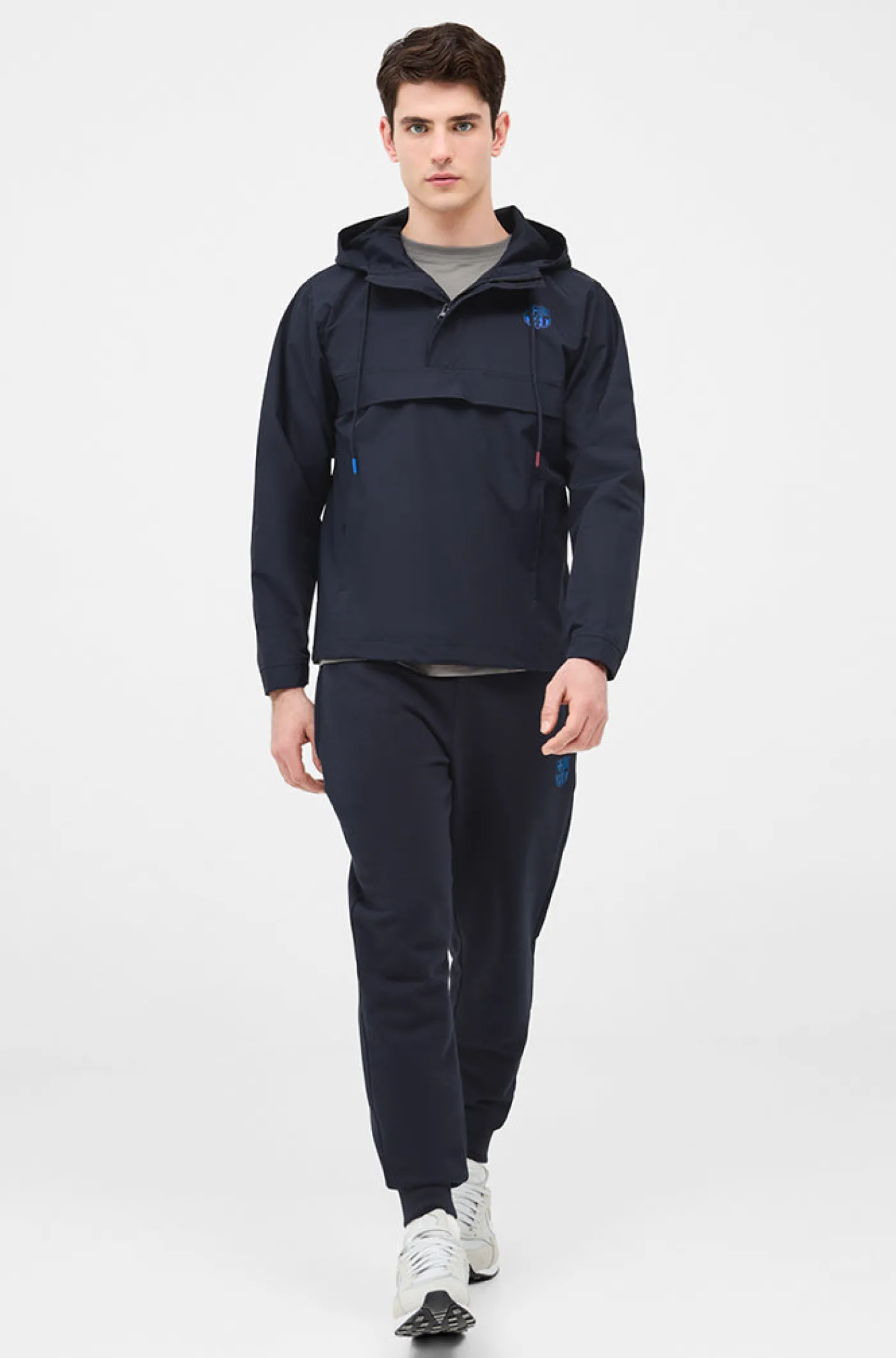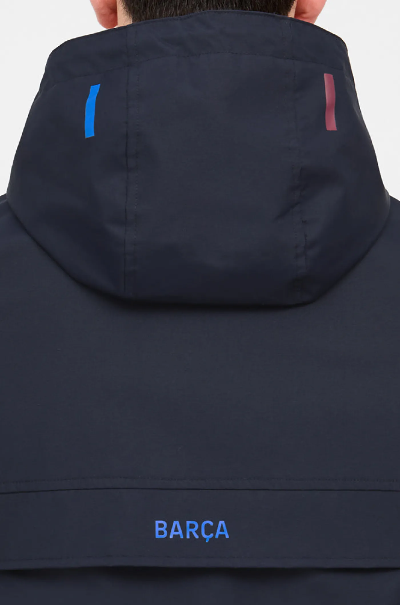 Chaqueta impermeable con el escudo del FC Barcelona en el pecho y lettering «BARÇA» en la parte trasera a contraste. Cuello alto con capucha. Manga larga con puños elásticos. Cierre con cremallera a medio pecho. Cierre con cremallera lateral para mayor comidad. Bolsillos delanteros: 2 con cremallera. Color: Azul marino.