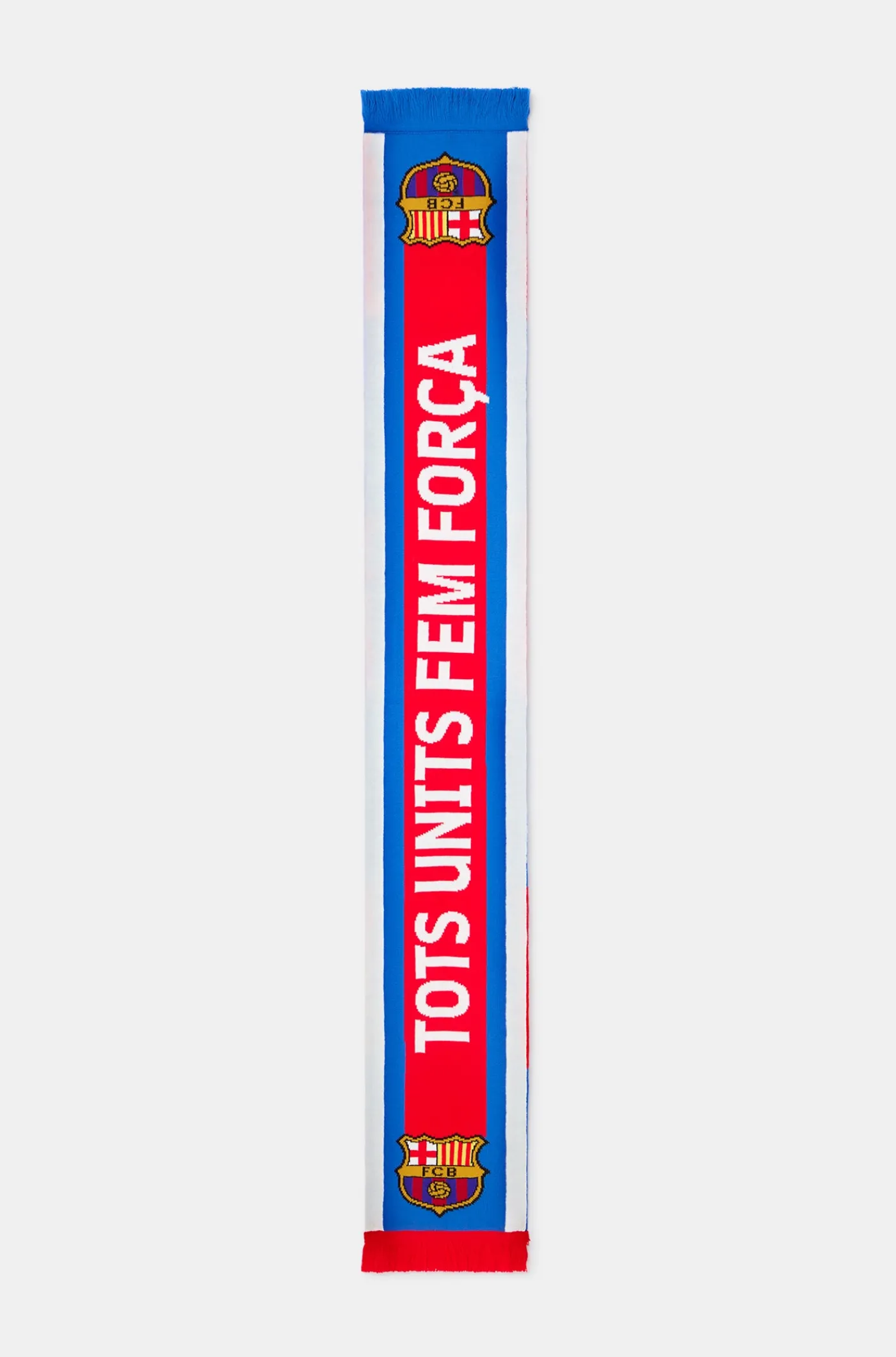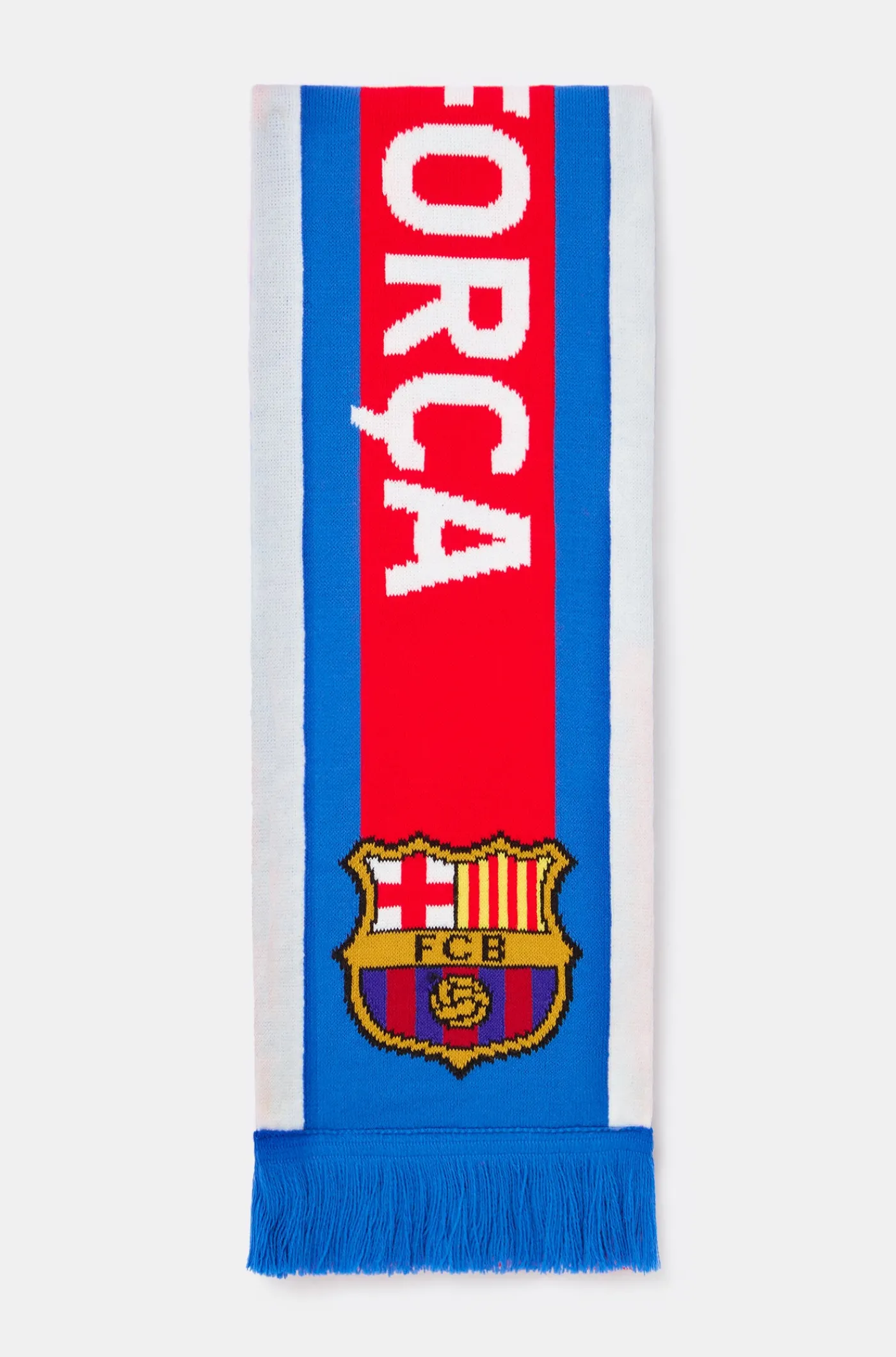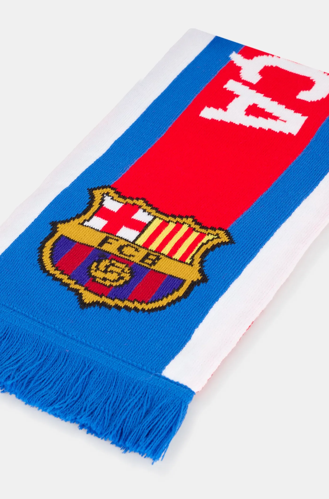 Bufanda del FC Barcelona con los colores de la 2ª Equipación 23/24. Extremos con flecos decorativos a contraste. Color: blaugrana.