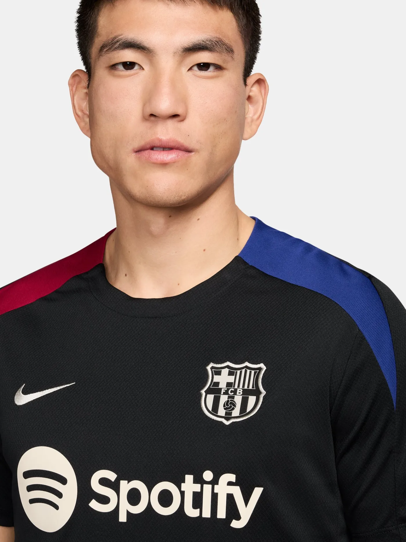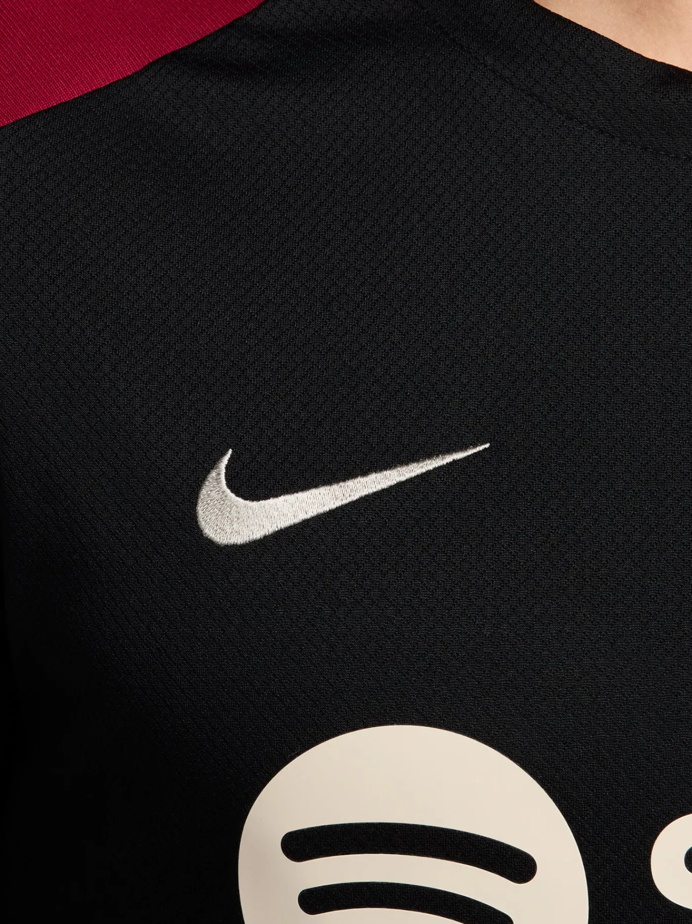 Camiseta de entrenamiento de manga corta. Presenta el parche con el escudo del FC Barcelona y el logotipo de Nike bordado. Escote redondeado. Mangas cortas. Tecnología Nike Dri-FIT. Color: negro.