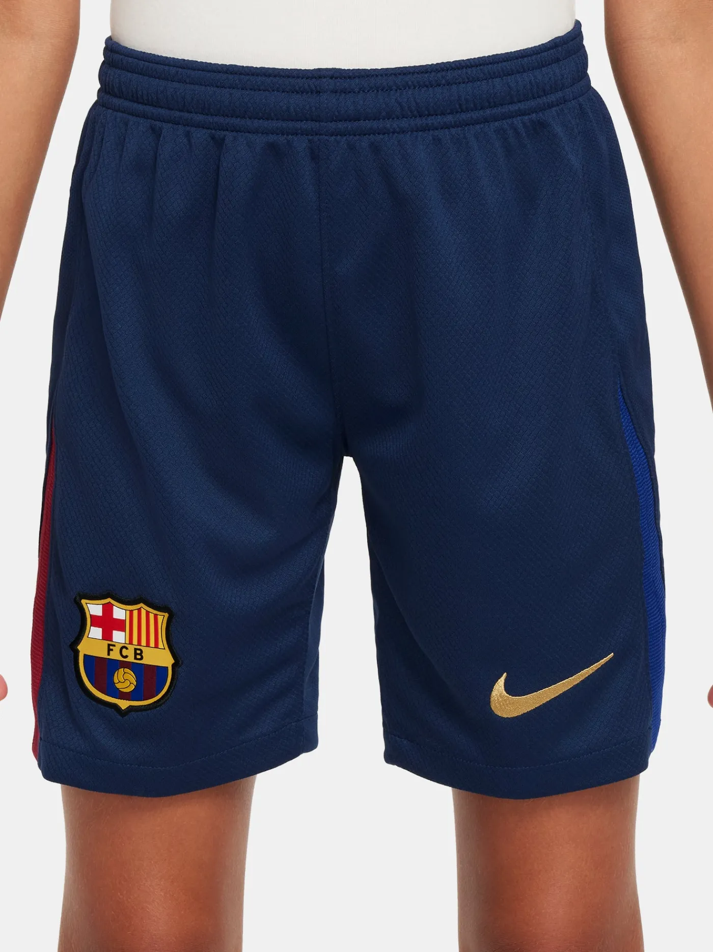 Pantalón corto de la primera equipación 24/25 para niños/as de 6 a 14 años. Con el parche del escudo del FC Barcelona y el logo de Nike bordado. Cintura elástica con cordones en el interior. Tecnología Dri-FIT de Nike. Color: azul marino.