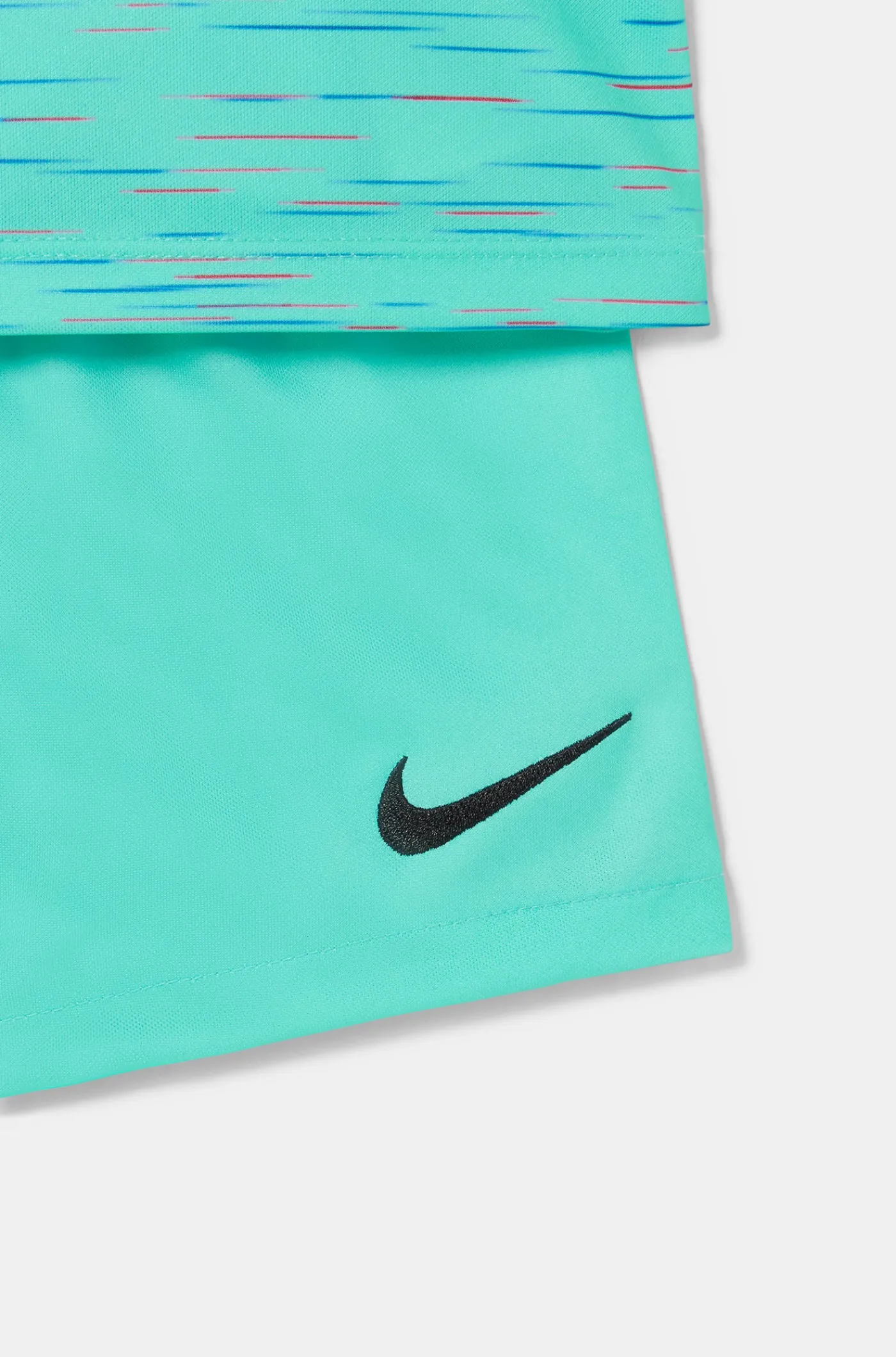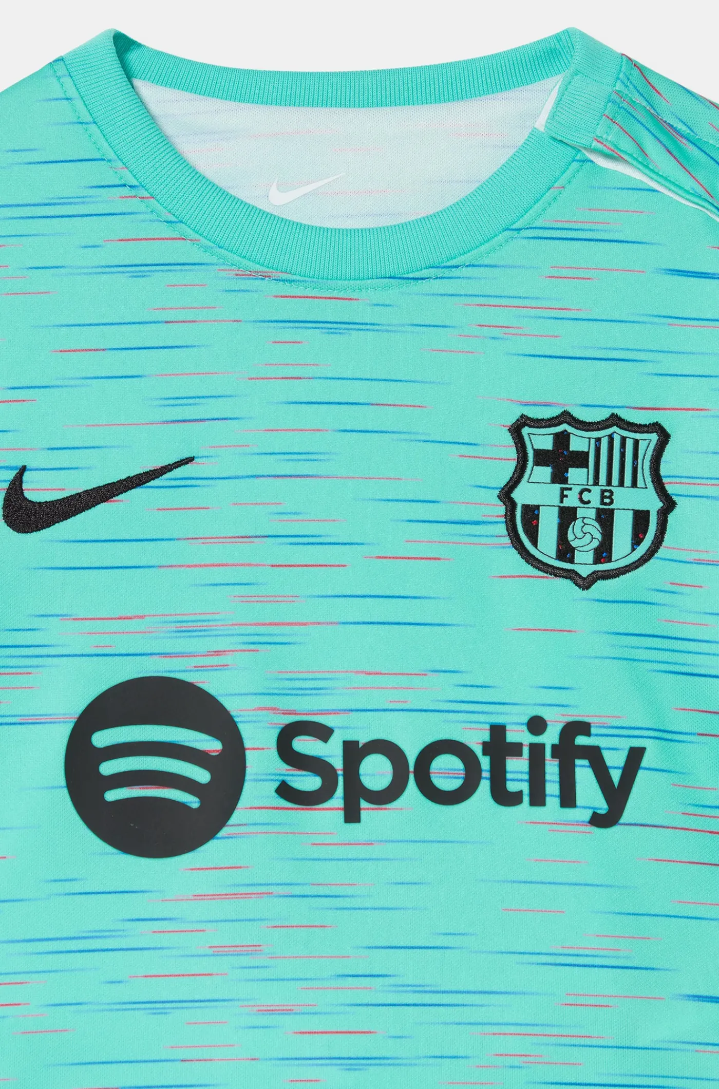 La tercera equipación 2023/24 destaca por el protagonismo del color light aqua, considerado también una expresión de la inspiración y la creatividad. Su diseño pone de manifiesto todo aquello que forma parte del Barça, de su historia, de su estilo de juego y de los jóvenes talentos formados en la Masía, que con su trayectoria, inspiran en todo el mundo. Con una imagen rompedora e innovadora en cuanto al diseño y la combinación de los colores con una trama de fondo que crea un relevo azulgrana, que evoca el ADN del FC Barcelona, y que se extiende por los hilos de todo el tejido.