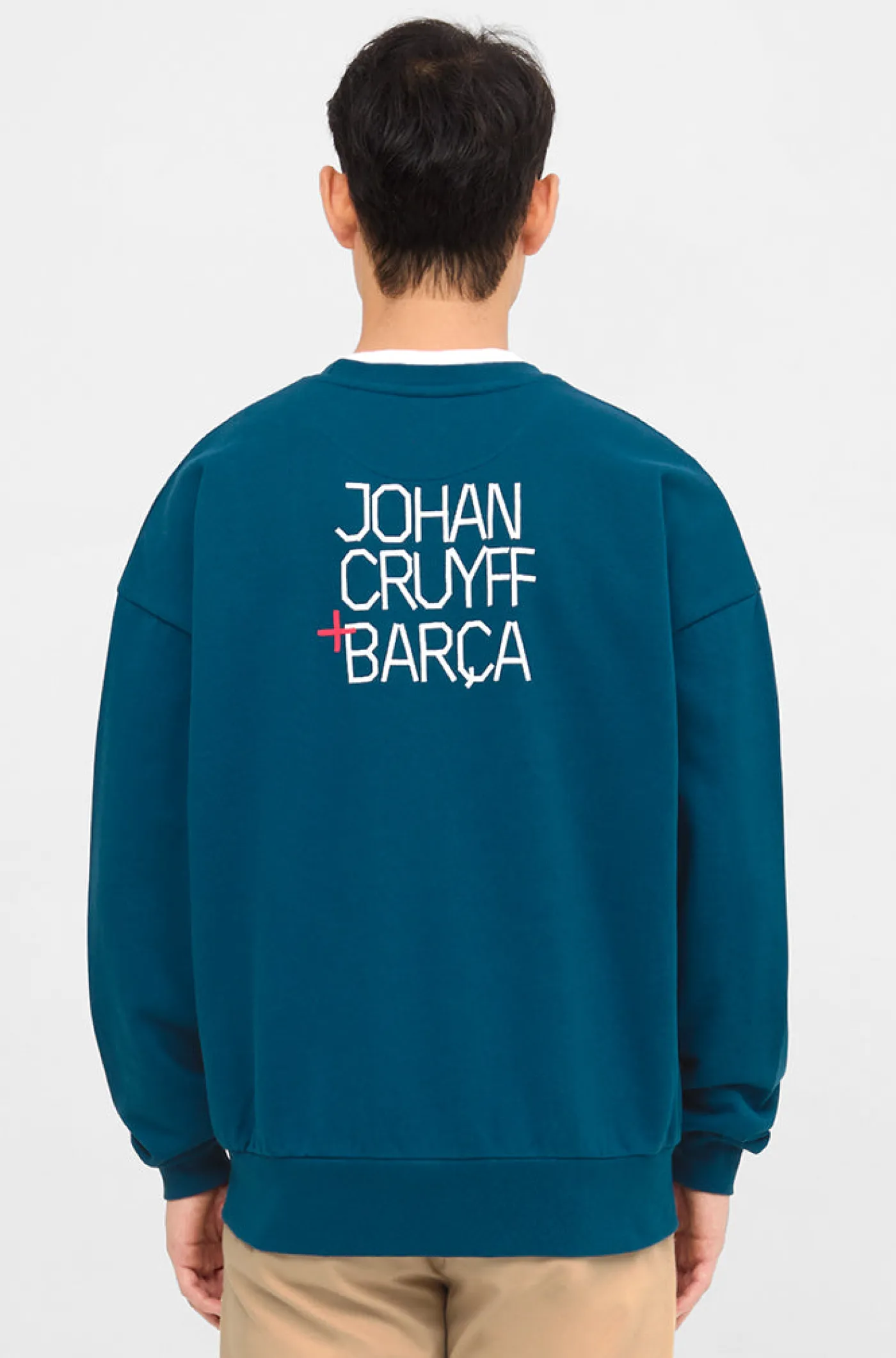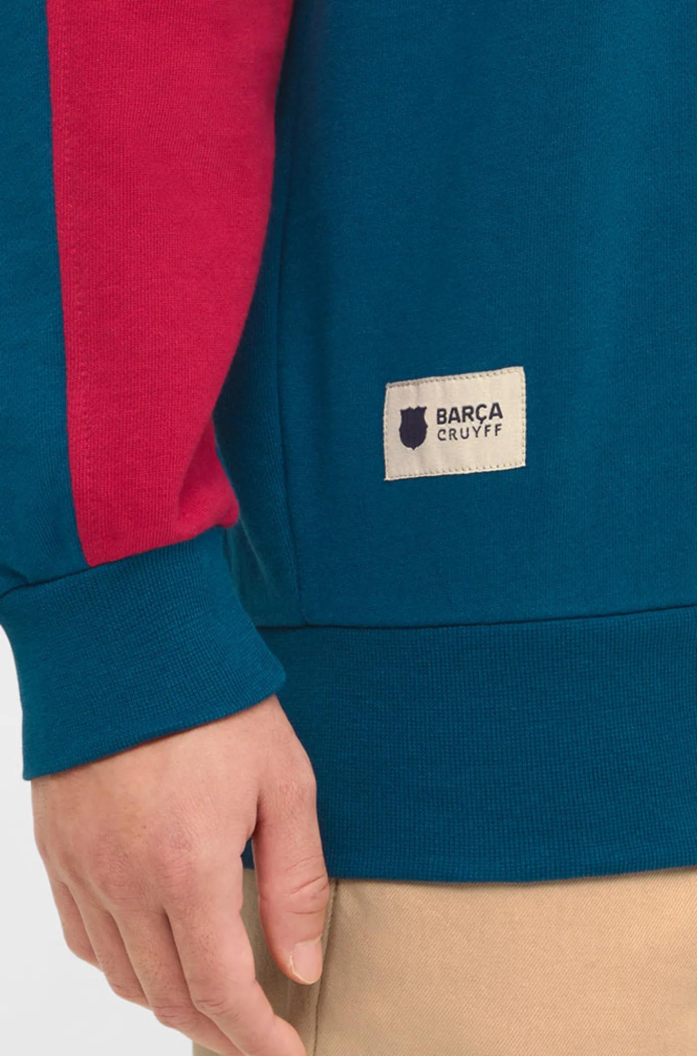 Sudadera de la colección del FC Barcelona que homenajea a Johan Cruyff a través de frases que llevan su sello y que transmiten sus conocimientos de fútbol y de la vida. Texto de «Johan Cruyff + Barça» a contraste en la parte posterior. Franjas laterales en las mangas de color rojo. Cuello redondo. Manga larga. Cintura y puños elásticos. Color: azul y rojo.