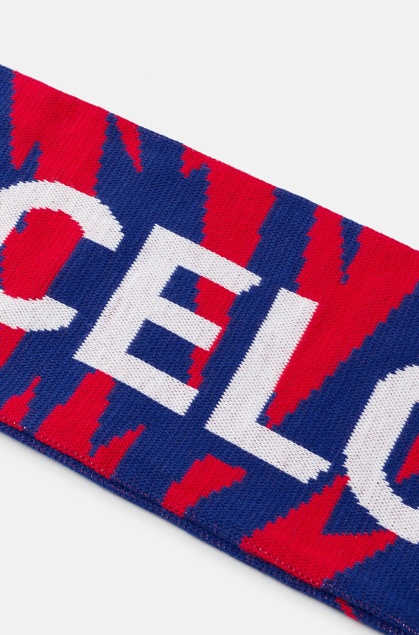 Bufanda con texto de la competición UEFA Champions League escrito en color blanco. Color: Azulgrana.