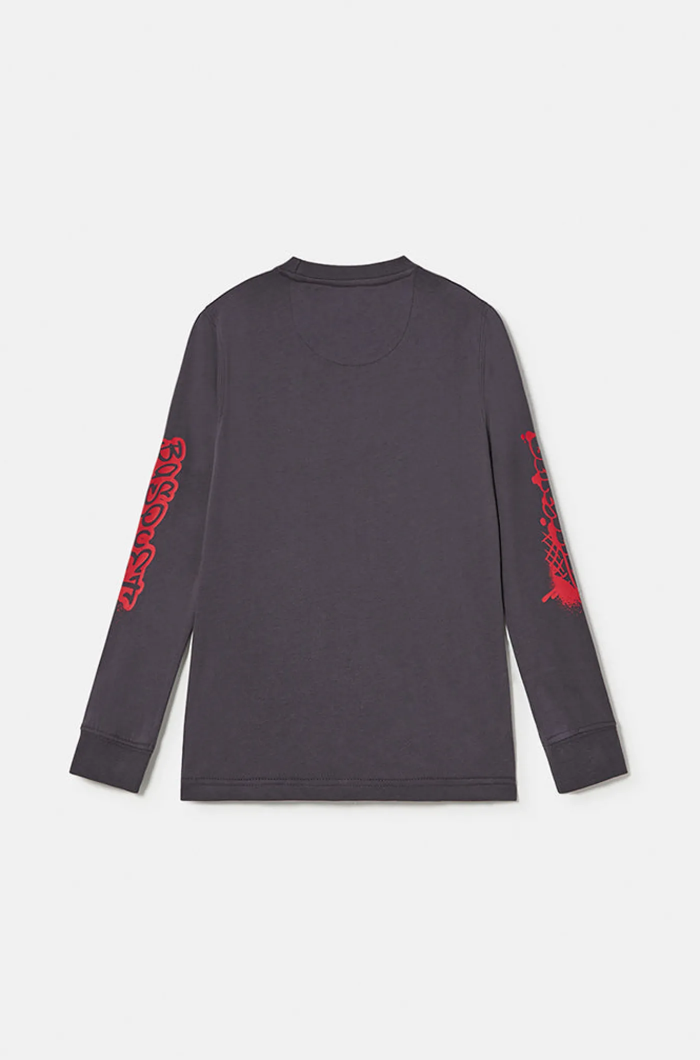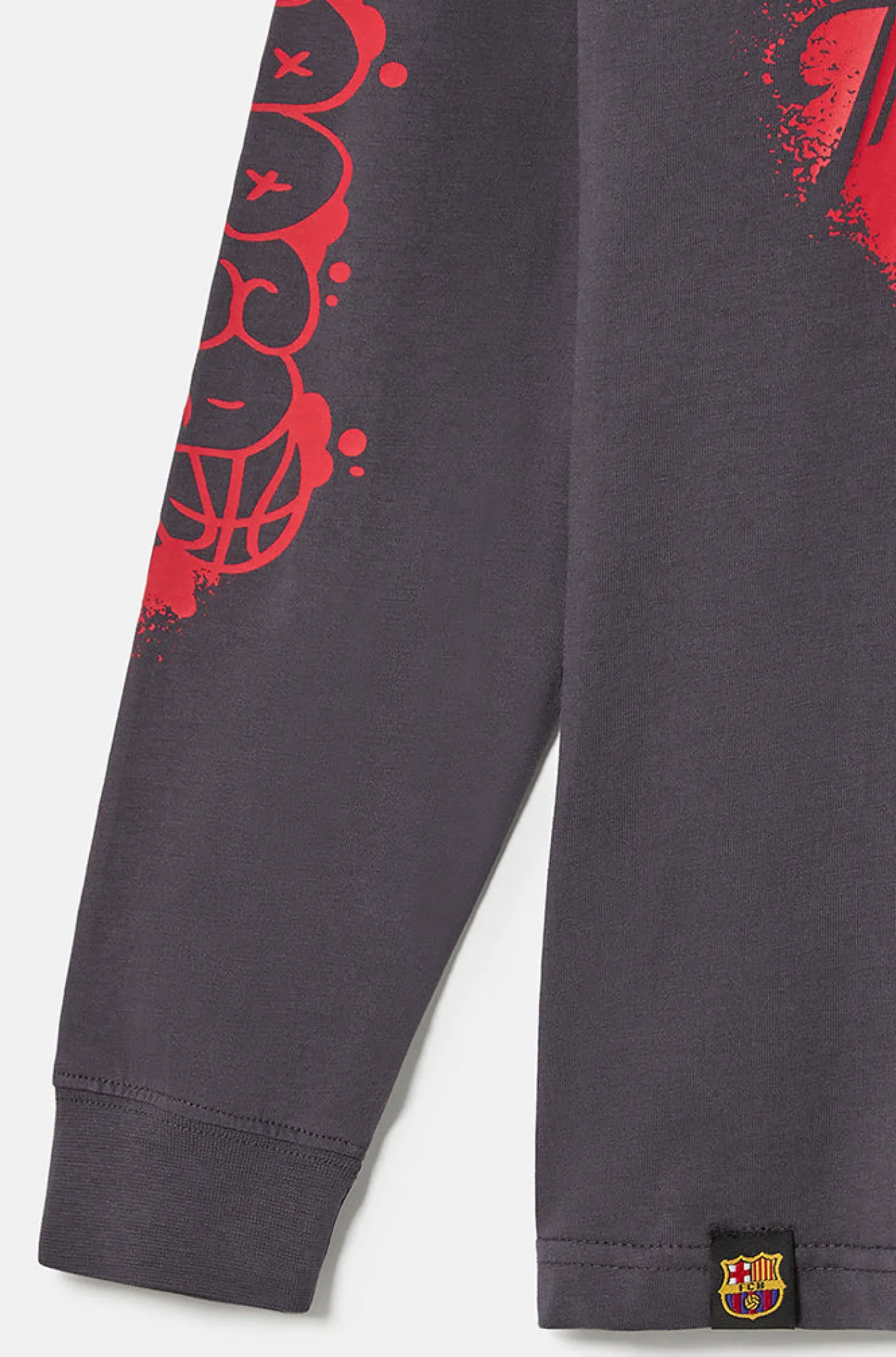 Camiseta de manga larga de algodón con texto «Barça» en la manga y el texto «Incondicionals» y una pelota de baloncesto en la parte delantera. Cuello redondo. Color: Antracita.
