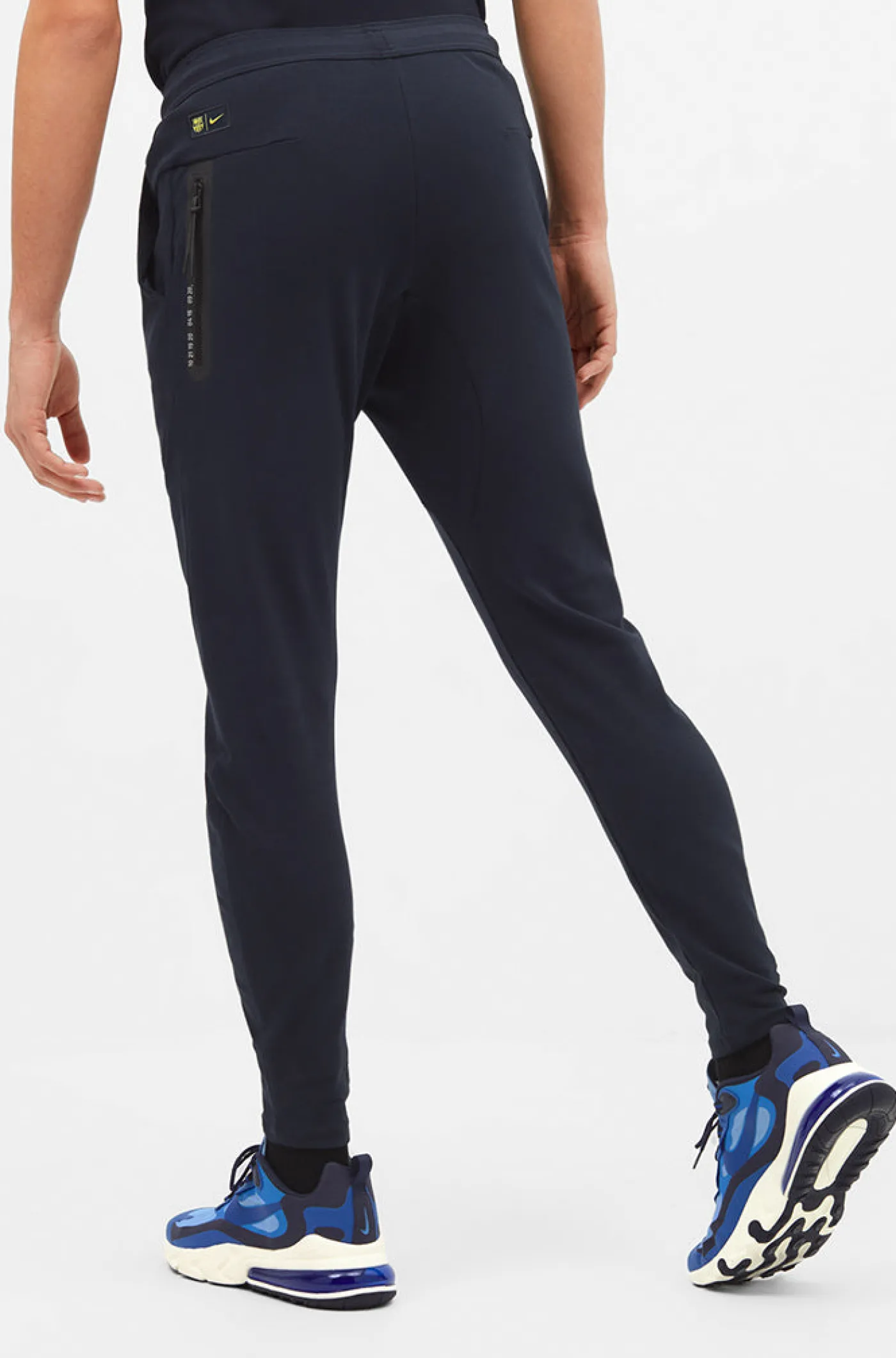 Pantalón deportivo diseñado con el logo de Nike y una de las frases más emblemáticas del FC Barcelona, «Més que un club» tono sobre tono y logo del Barça a contraste. Cintura elástica y cordones en el interior para una mejor sujeción. Bolsillos laterales: 2. Bolsillos en la parte posterior: 1 con cremallera. Su tecnología Nike Tech Pack hace de esta prenda un comodín para poderla usar en cualquier momento. Color: Marino.