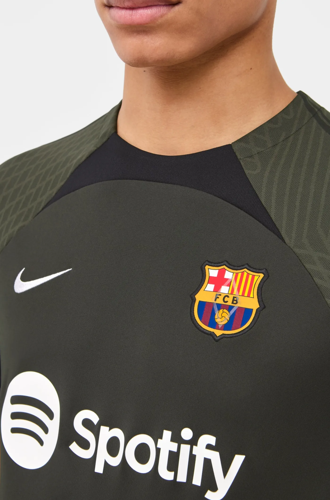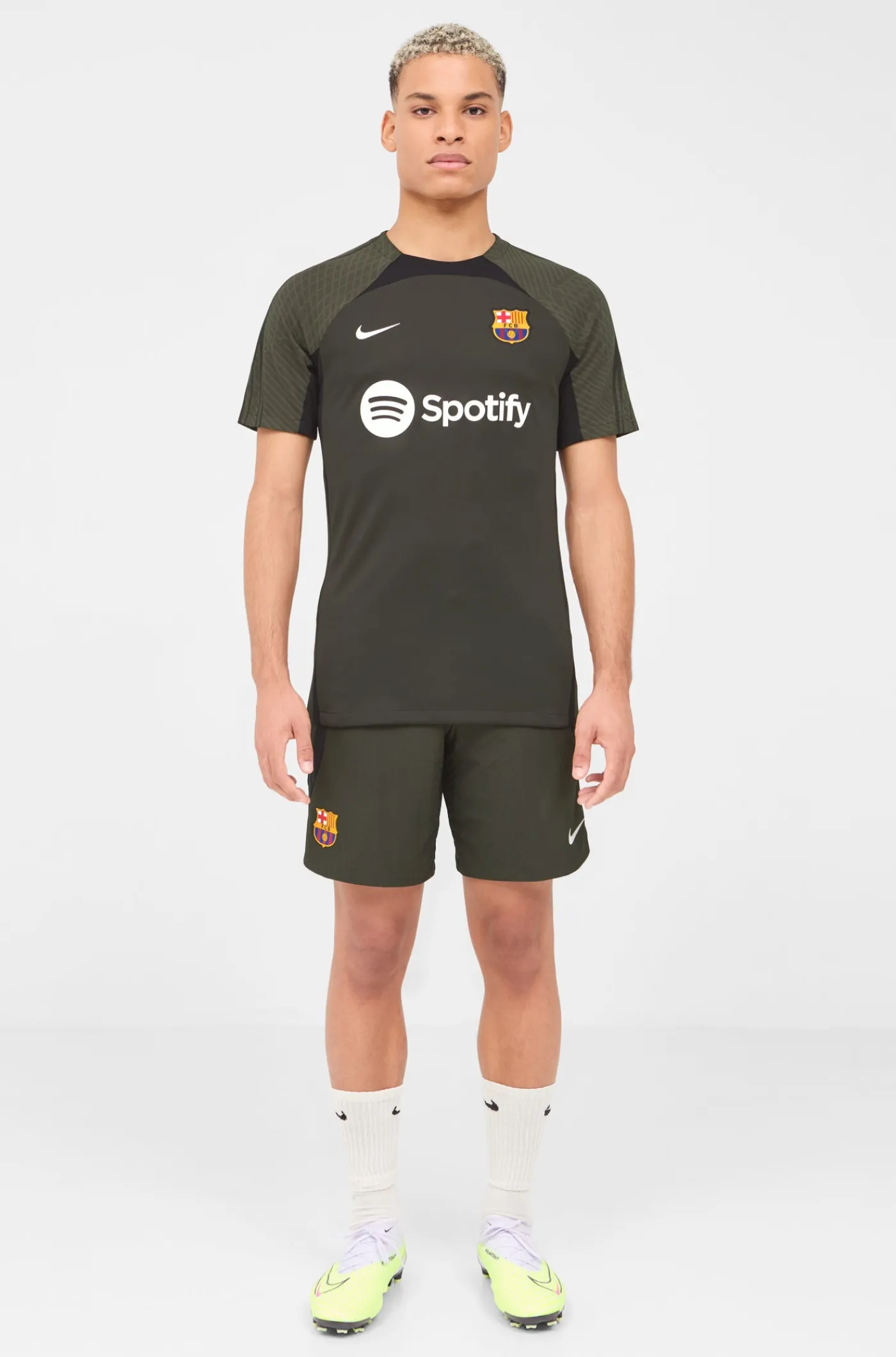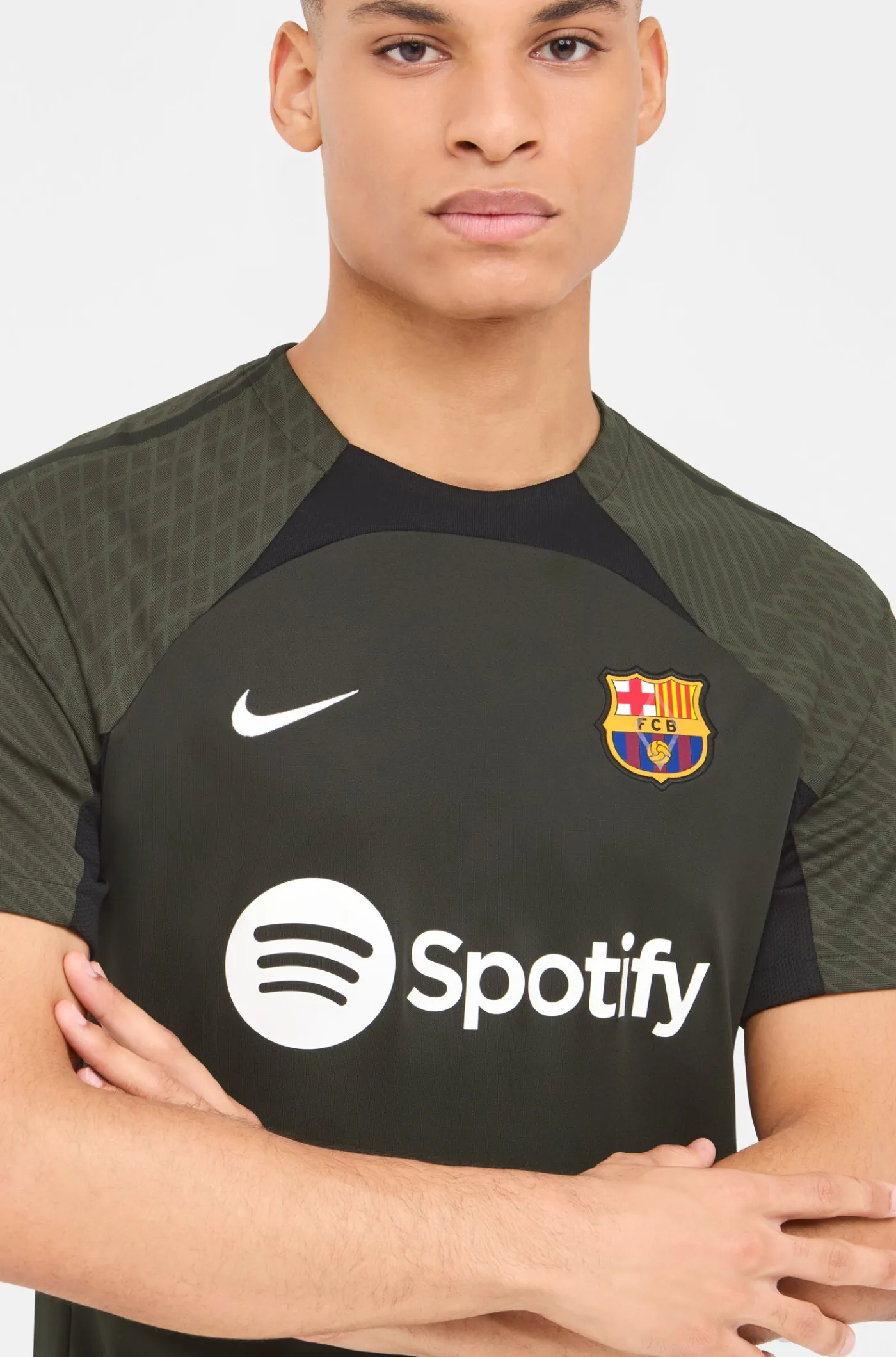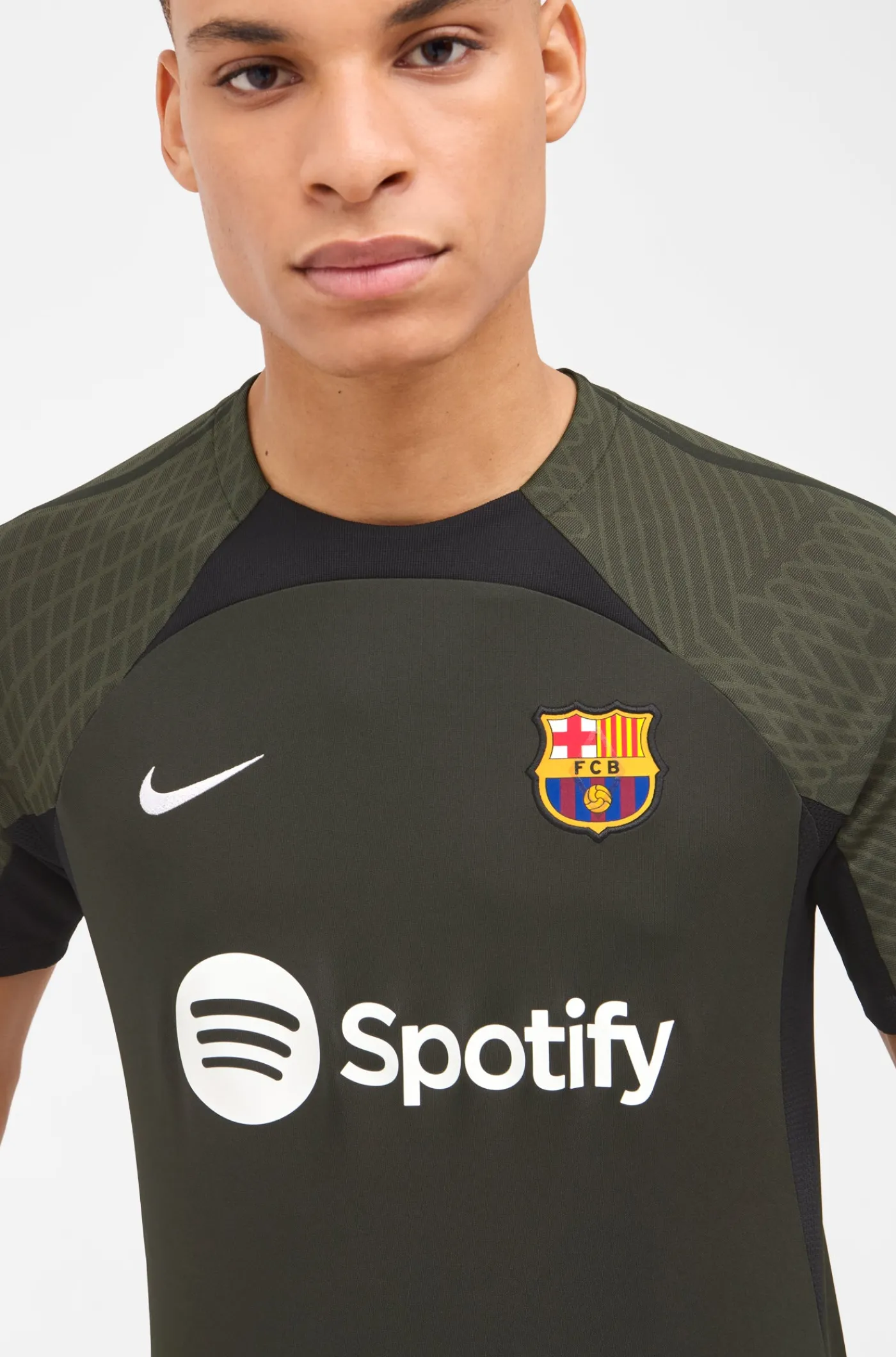 Camiseta de entrenamiento de manga corta. Con el parche del escudo de FC Barcelona y el logo de Nike bordado. Cuello redondo. Manga corta. Tecnología Dri-FIT de Nike. Color: verde.