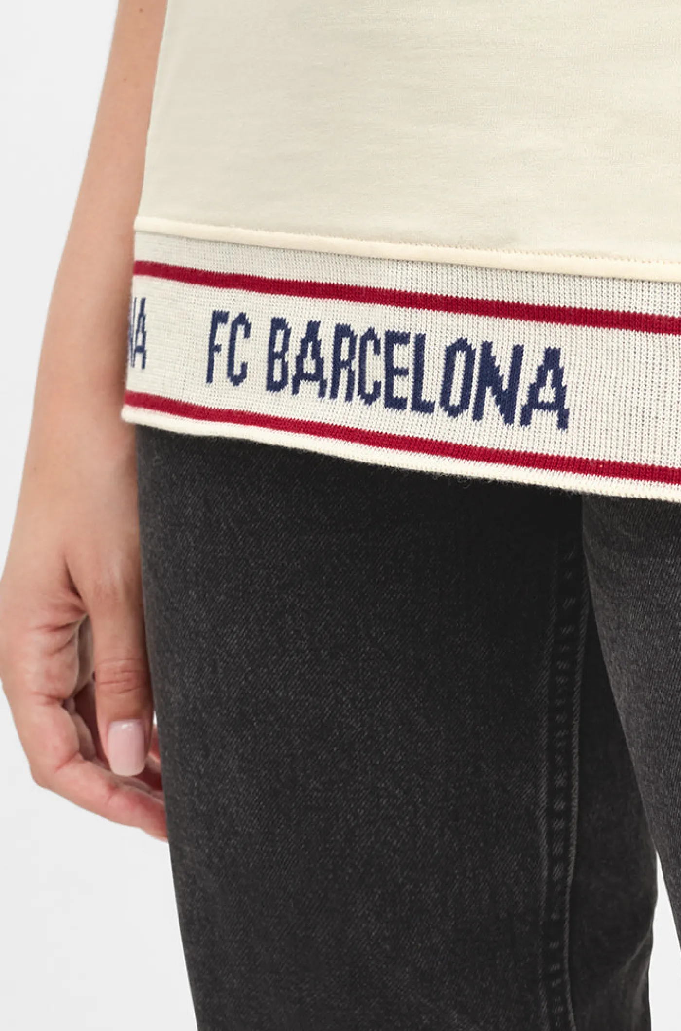 Camiseta larga con banda decorativa y estampación del logo FC Barcelona en la cintura. Cuello redondo. Manga corta. Pre…