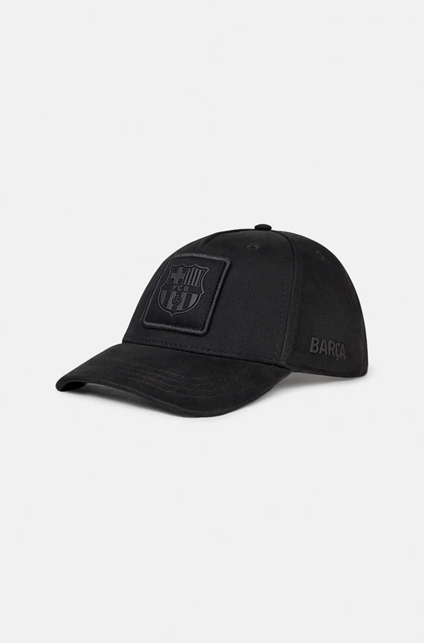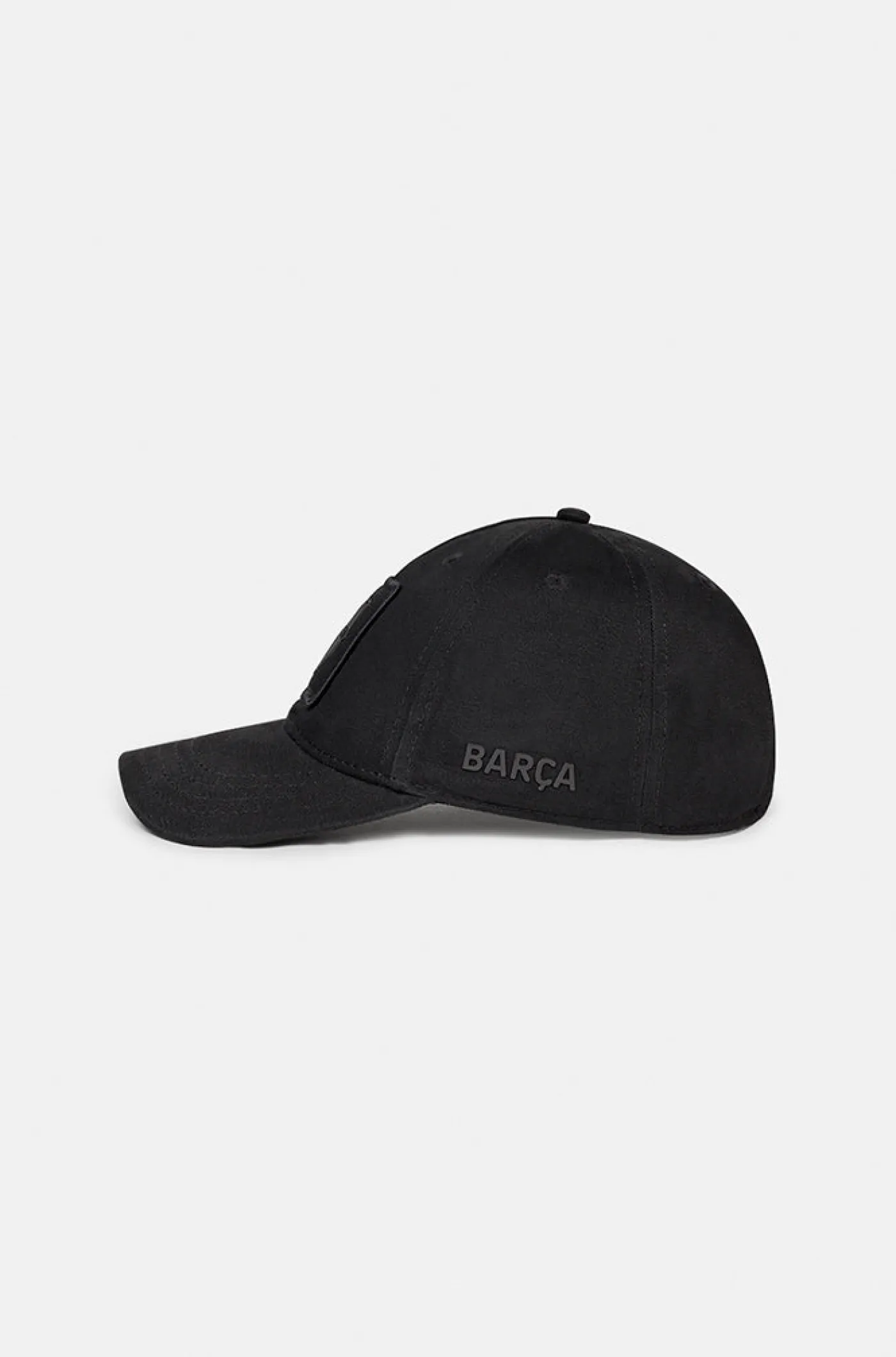 Gorra junior con el escudo bordado del FC Barcelona tono sobre tono. En el lateral se encuentra bordado la palabra «Barça». Visera semirrígida. Ajustable mediante hebilla en la parte posterior. Detalle de lettering con una frase del himno del club en la parte interior. Color negro