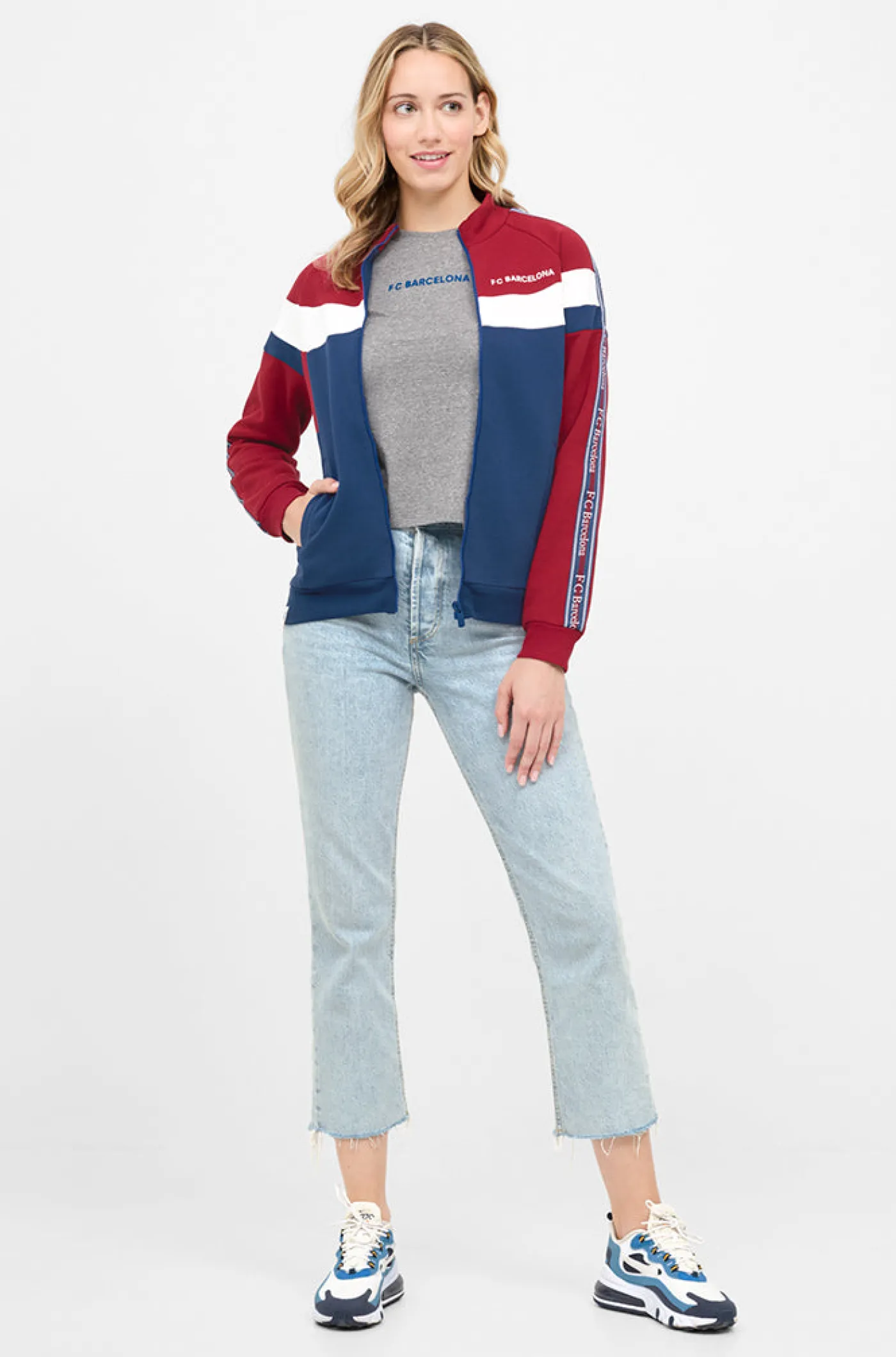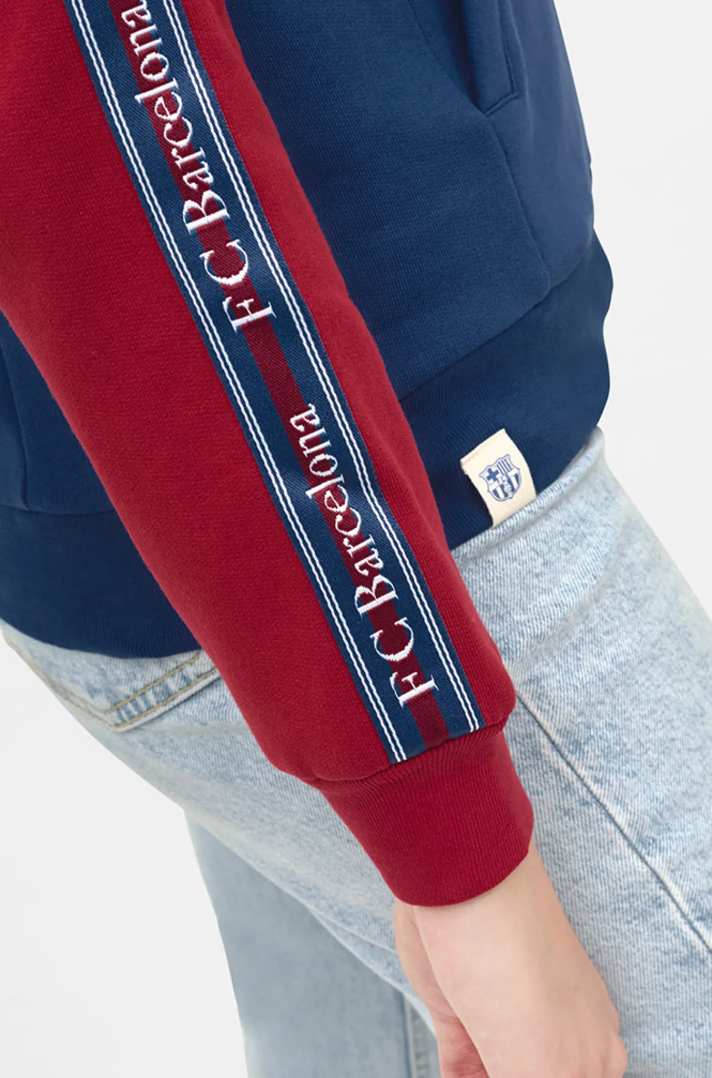Sudadera con cremallera y franja FC Barcelona a lo largo de las mangas y pecho. Cuello alto. Manga larga. Interior de fe…