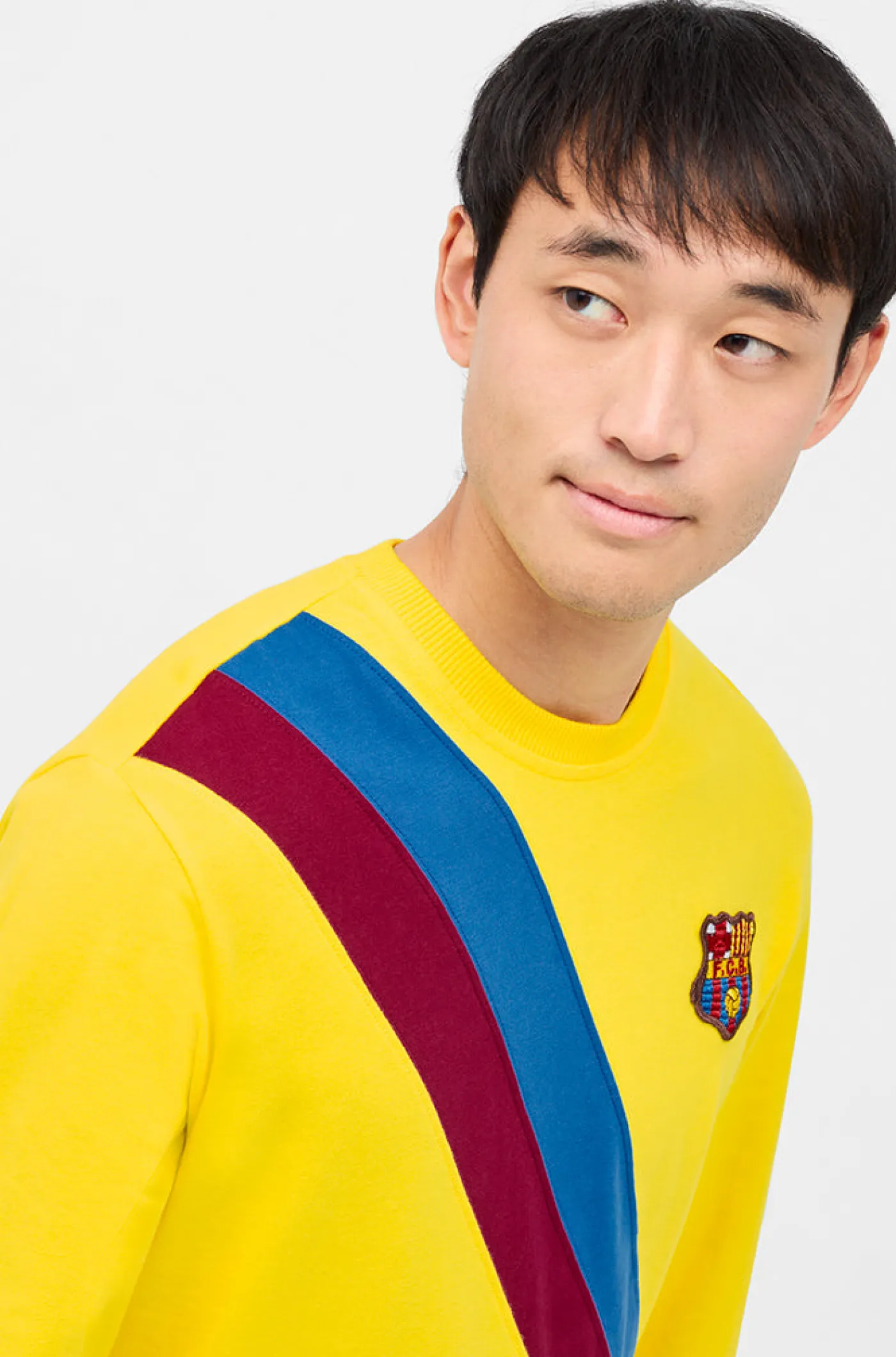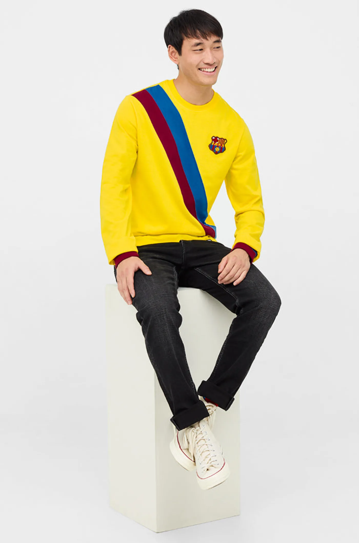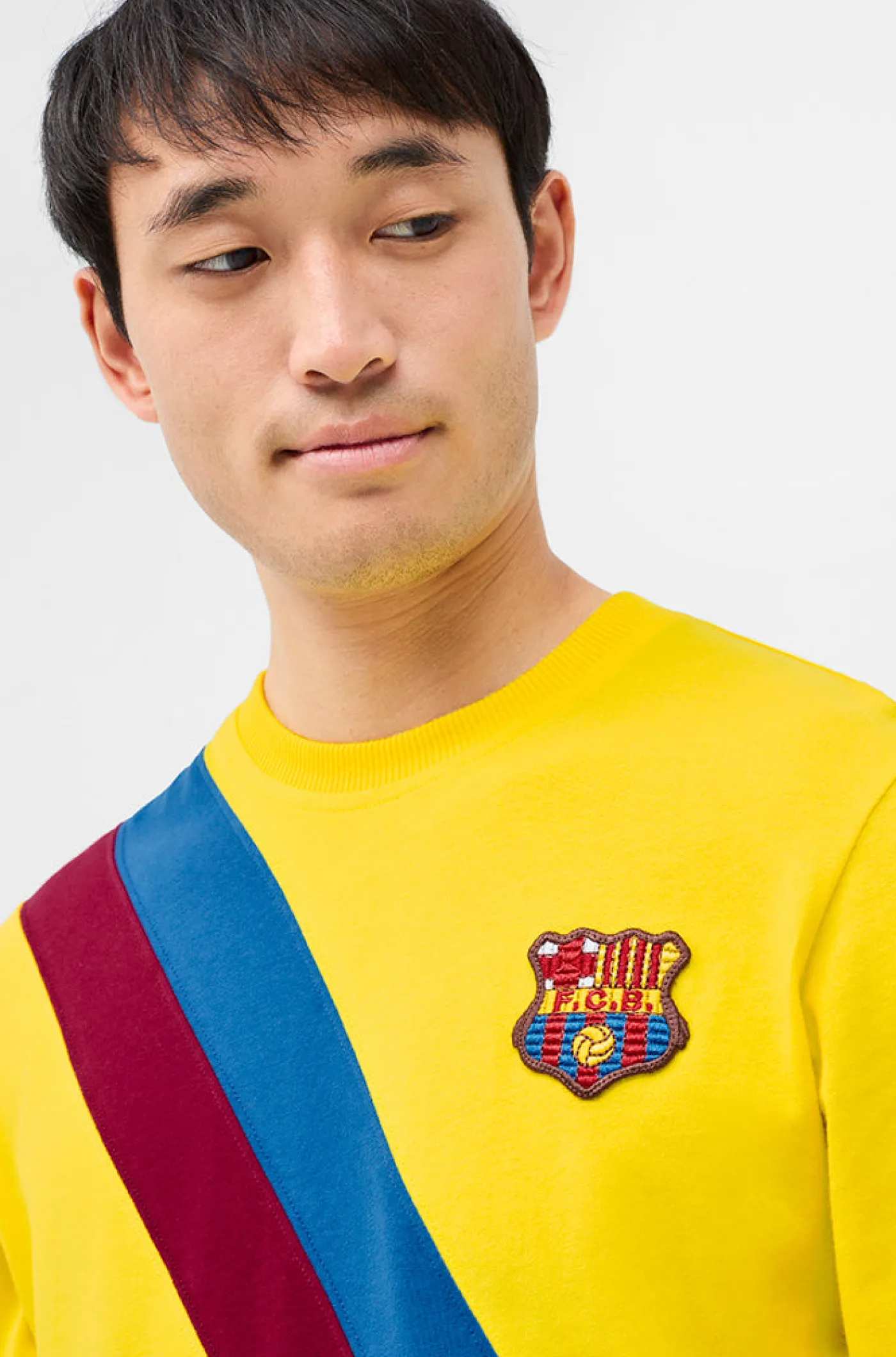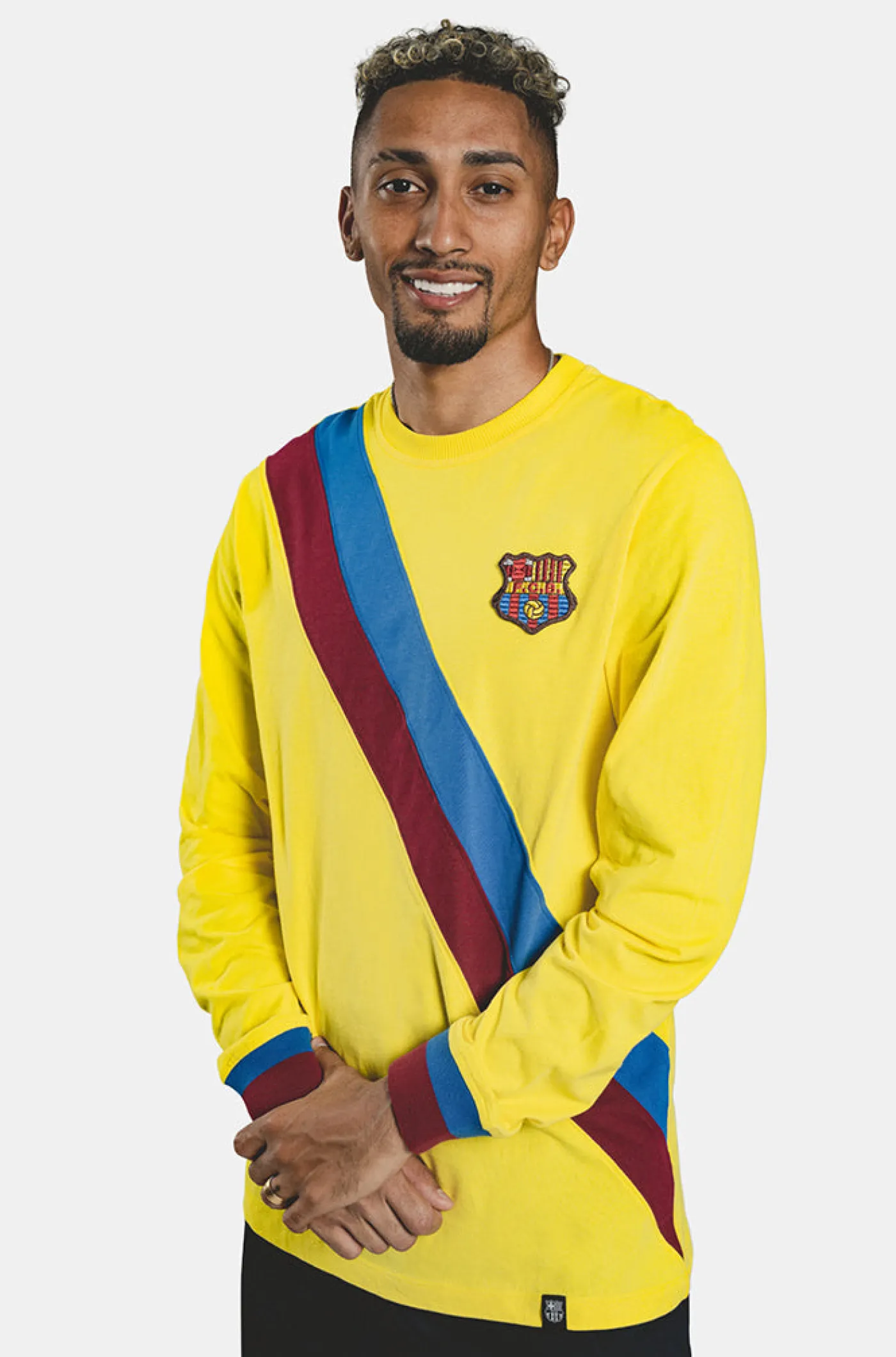 Réplica de la 2ª equipación del FC Barcelona de la temporada 1974/75. Conmemora a jugadores como Johan Cruyff, Carles Rexach, Migueli…, haciendonos sentir la emoción de estos jugadores. Su tejido de algodón la hace una prenda cómoda y ligera. Detalle de la bandera culé en diagonal en la parte delantera. Cuello redondo. Manga larga. Color: Amarillo. Venta exclusiva de Barça Stores.