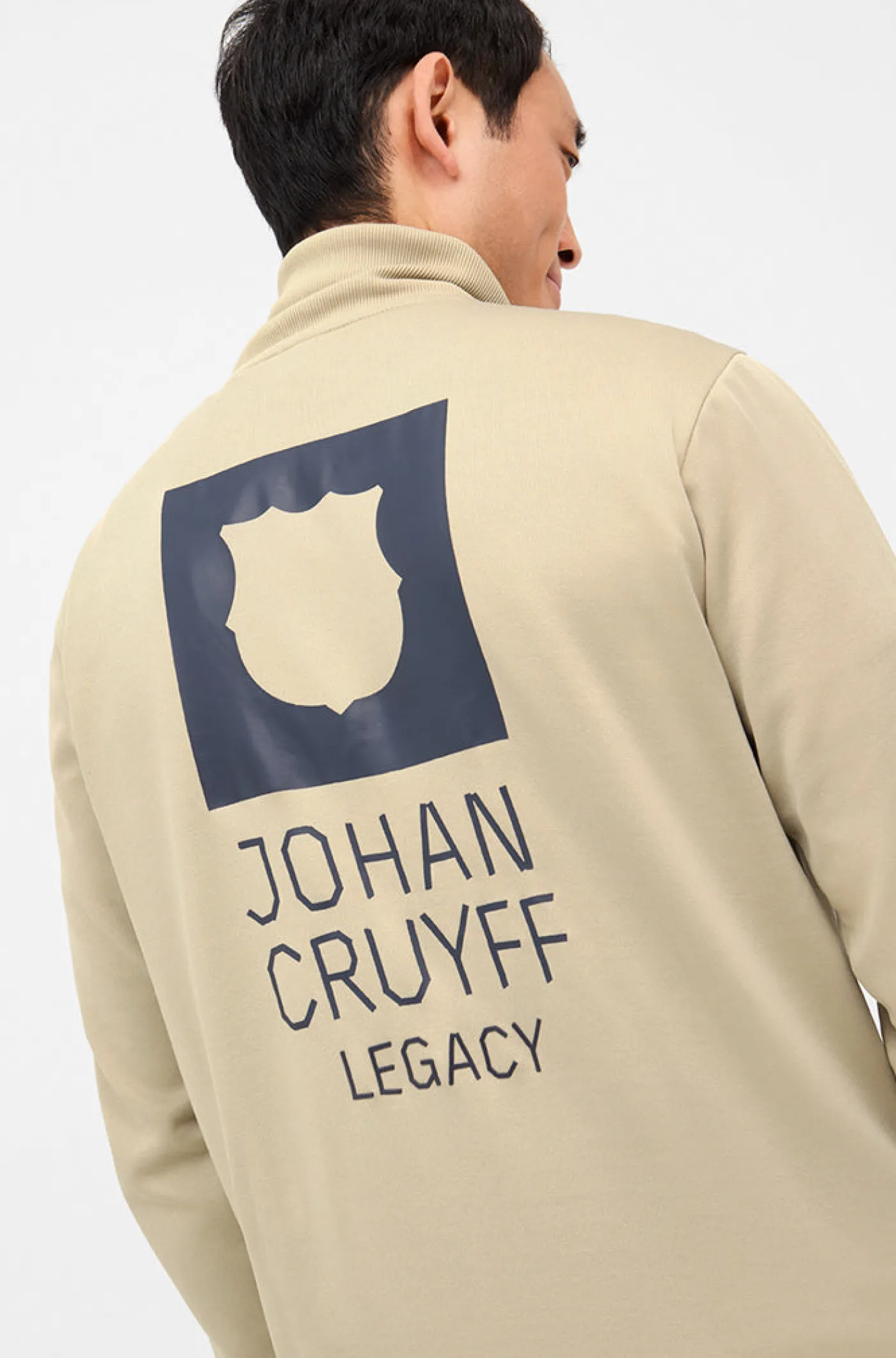 Chaqueta de la colección del FC Barcelona que homenajea a Johan Cruyff a través de frases que llevan su sello y que transmiten sus conocimientos de fútbol y de la vida. En la parte frontal, presenta el nº 9 bodado a contraste y en la parte trasera, la silueta del escudo del FC Barcelona a contraste junto con el texto «Johan Cruyff Legacy». Cuello con solapas. Cierre con cremallera. Bolsillos delanteros: 2 con cremallera. Cintura y puños elásticos. Color: beige.