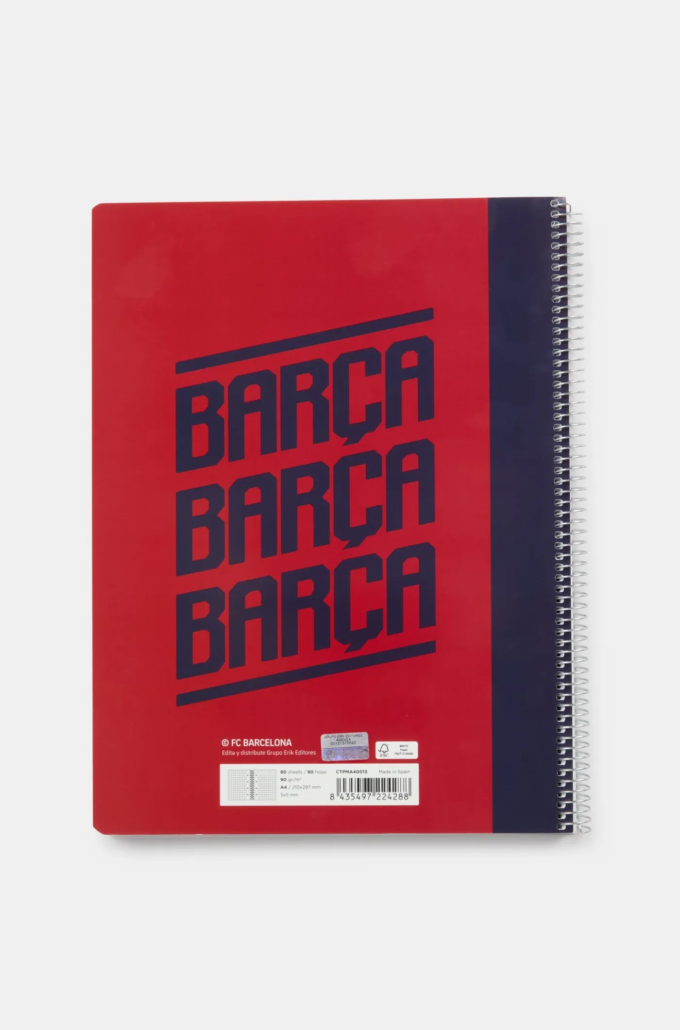 Libreta del FC Barcelona con escudo y rotulación «Barça» en la parte trasera. Color: blaugrana.