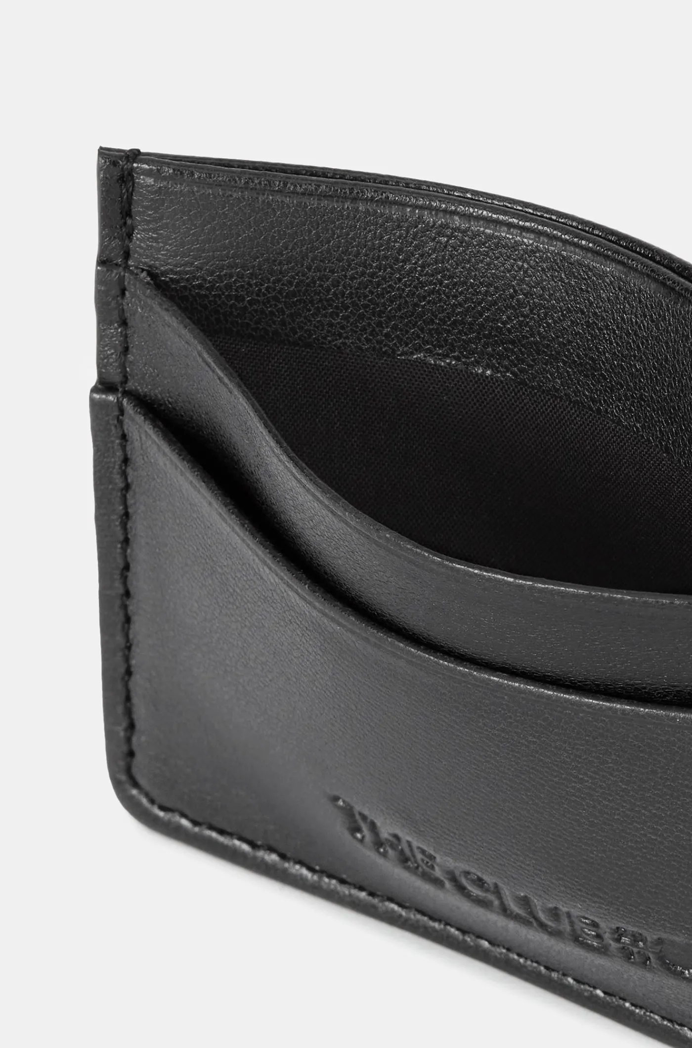 Tarjetero confeccionado en piel ovina, material de tacto suave y fibra compacta, de color negro y muy agradable en su uso.