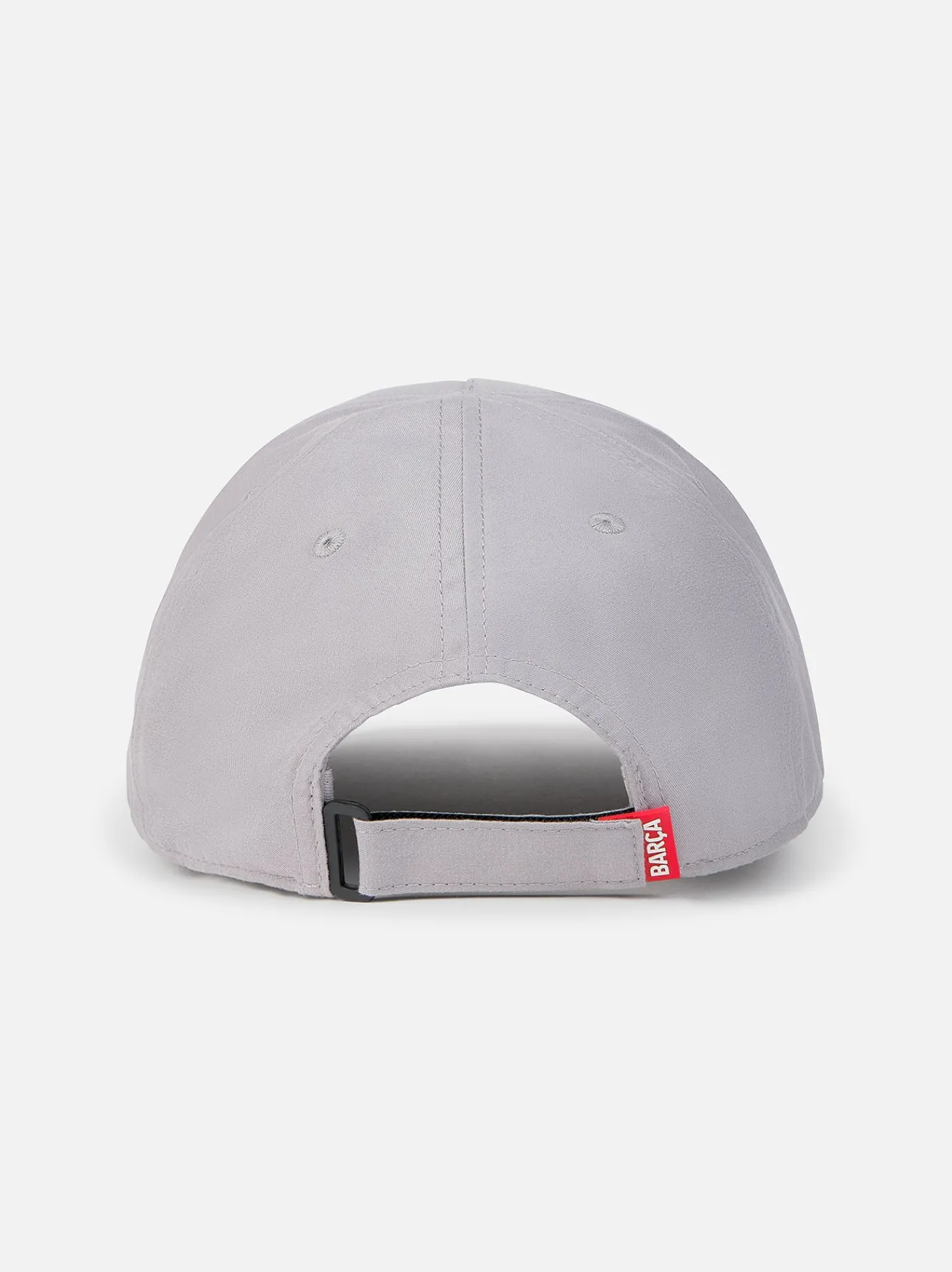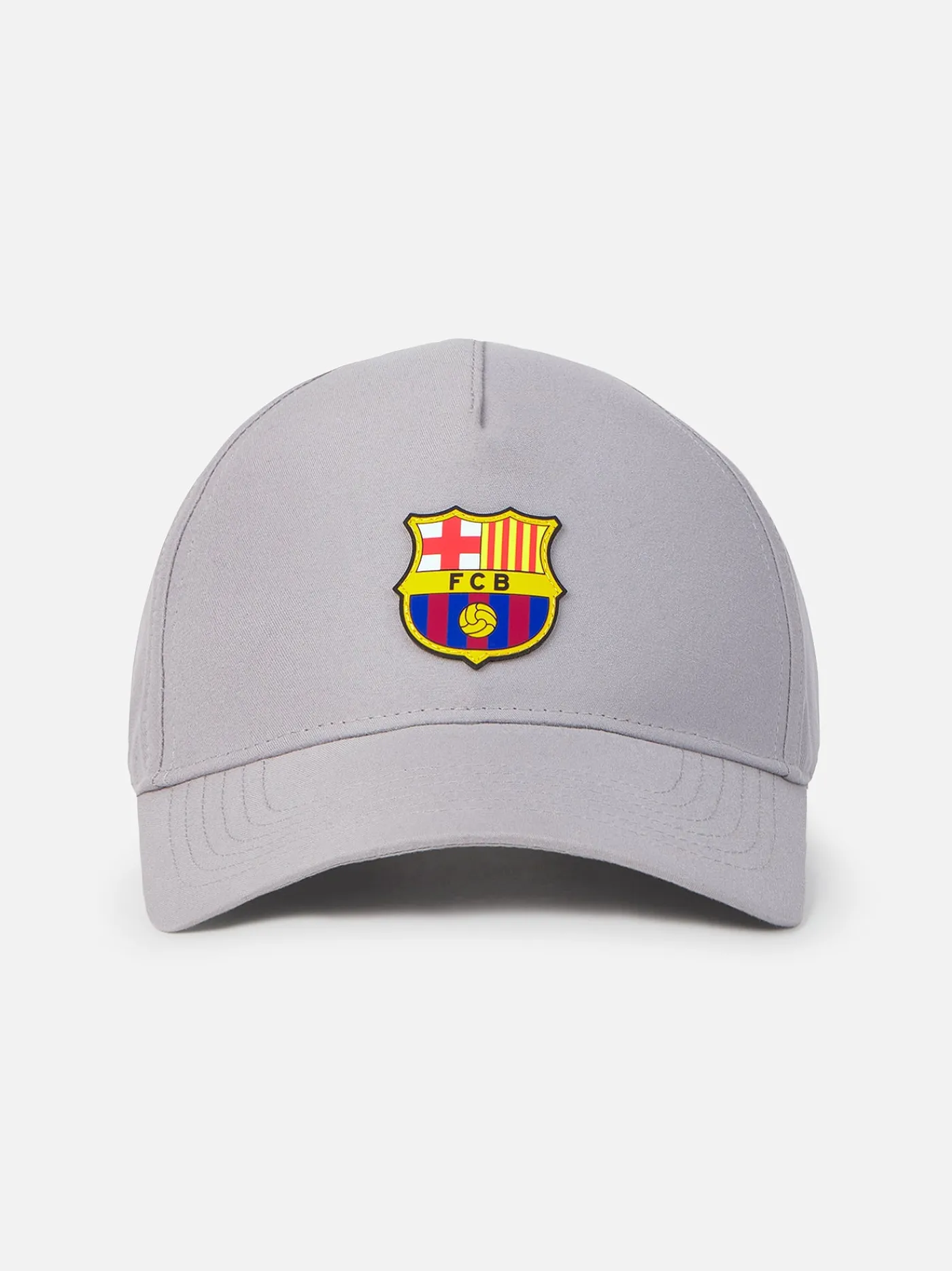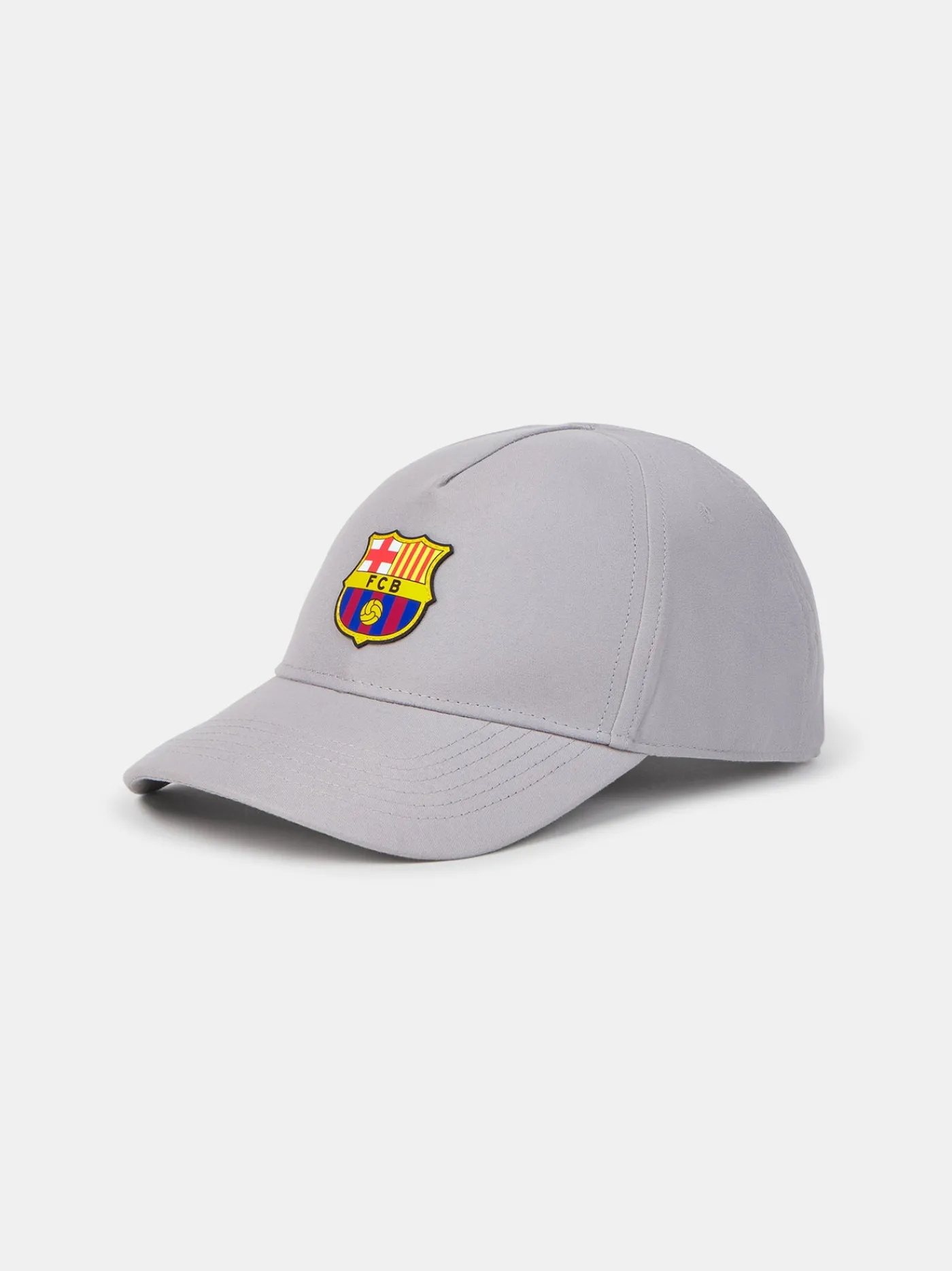 Gorra del FC Barcelona con escudo en el centro y ajuste con belcro en la parte trasera. Color: Gris claro.